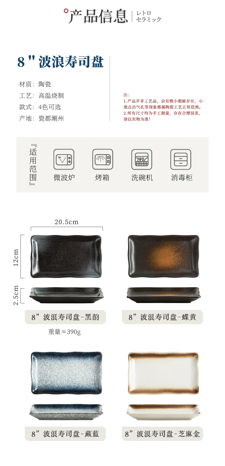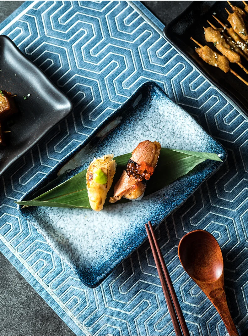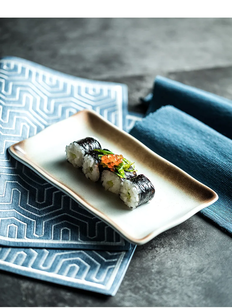 Ceramic Barbecue Japanese Hotel Restaurant Home Snack Plate Rectangular Sushi Plate