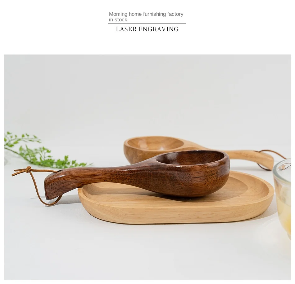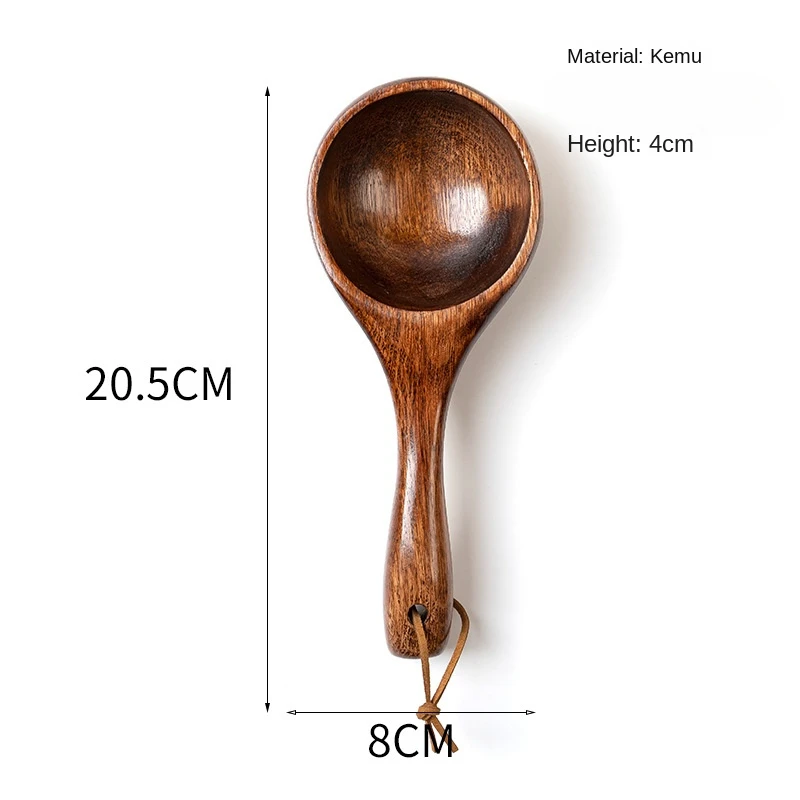 Creative Japanese Style Household Whole Wood Long Handle Dry Rice Spoon Practical Wooden Measuring Spoon Water Ladle