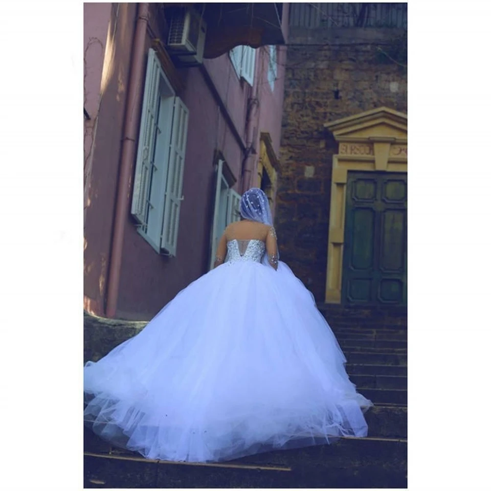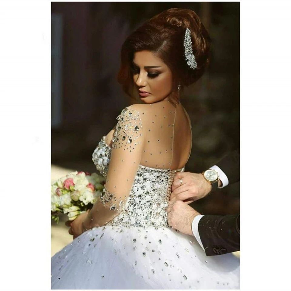 Customized Wedding Dresses For Bride 2025 Wedding Dress Elegant Long Sleeves Bridal Gown Beading Crystal Vestidos De Novia