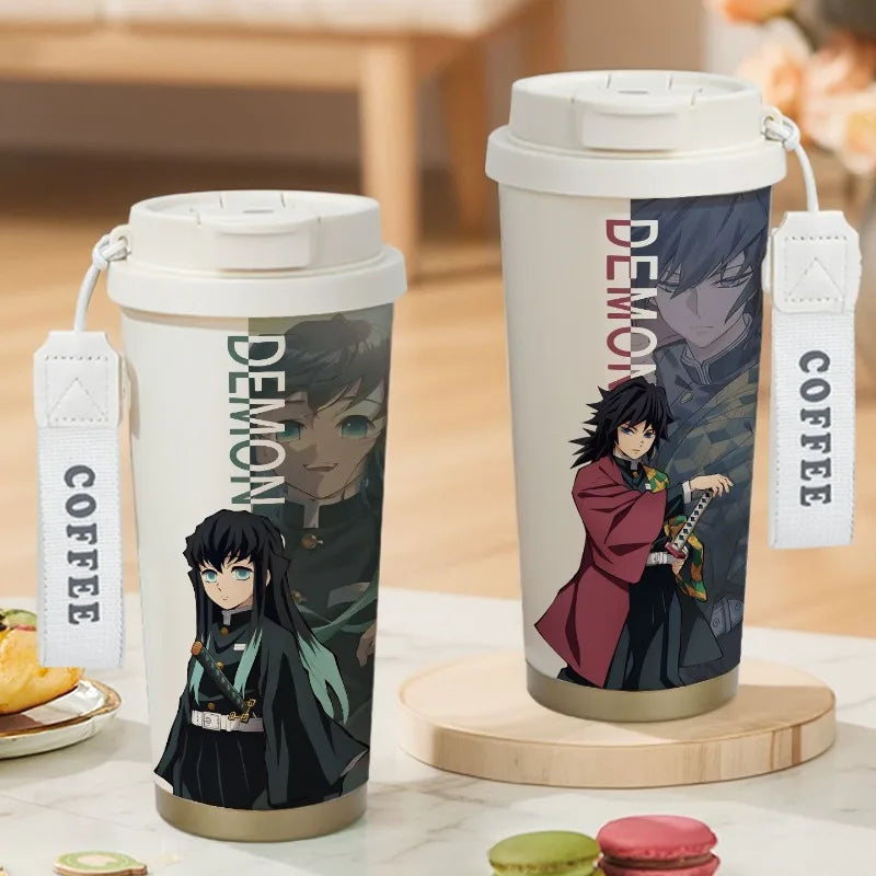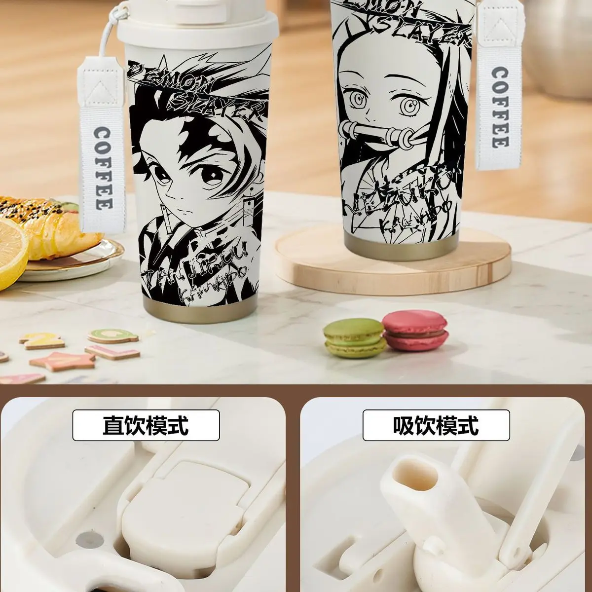 Demon Slayer Kamado Tanjirou Nezuko Agatsuma Zenitsu Anime Pattern Stainless Steel Thermos Mug Idea Leakproof Straw Cup Gift