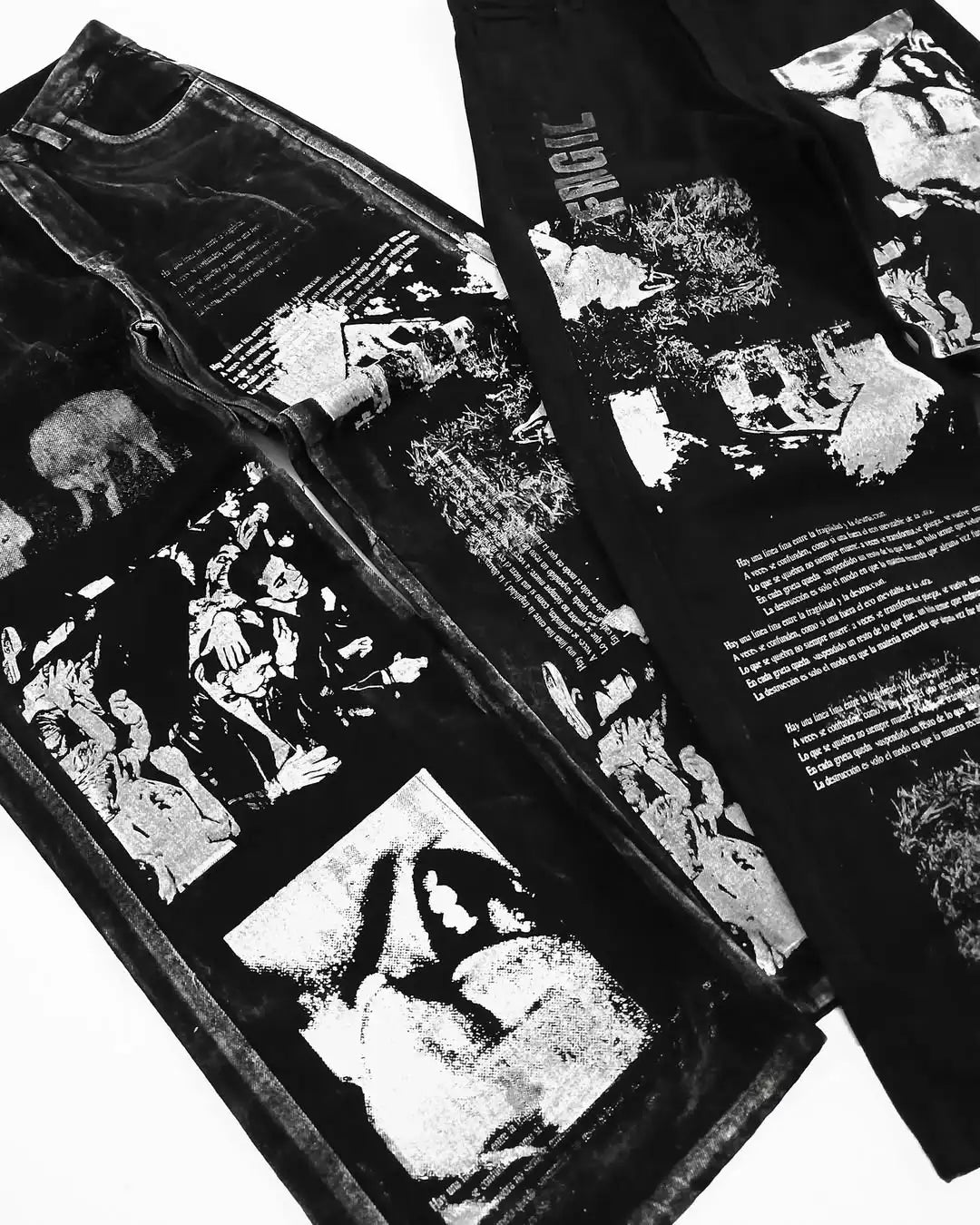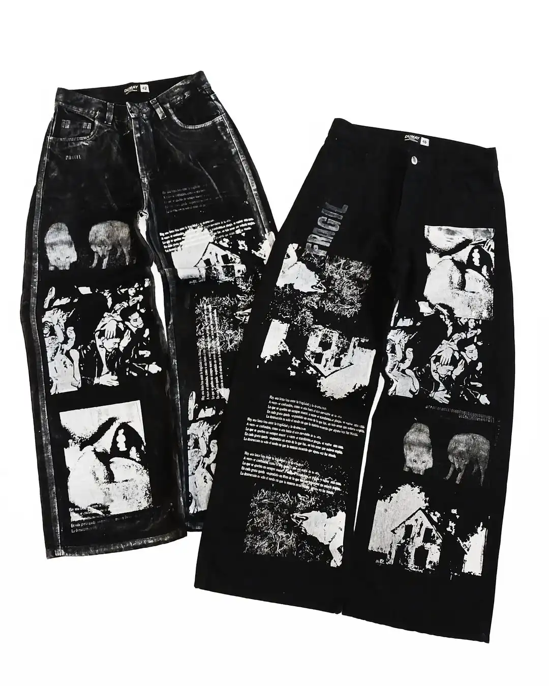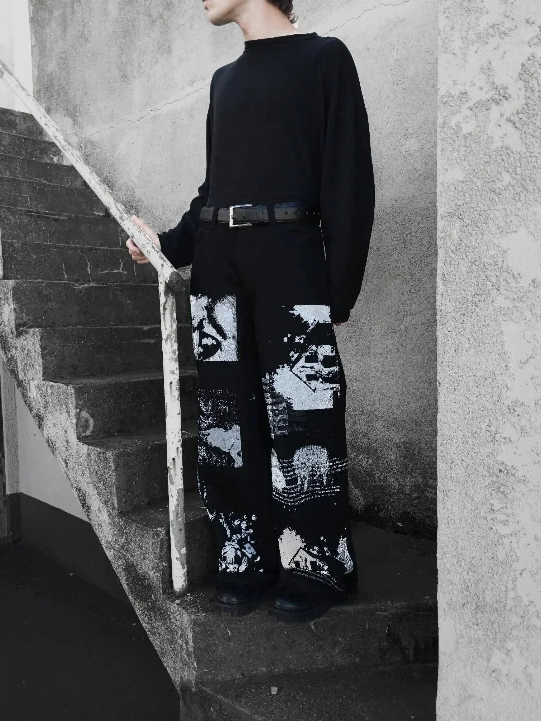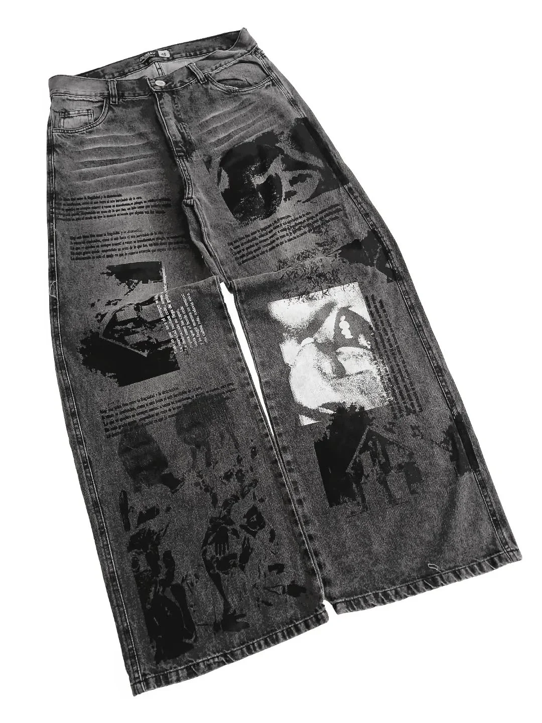 European and American hip-hop classic black straight leg loose jeans men's new Y2k high street design low waist wide leg pants