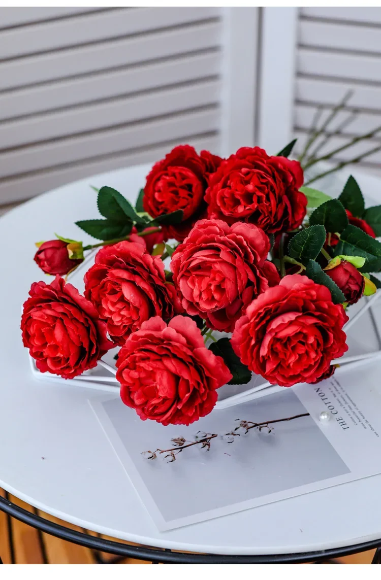 European Style Artificial Peony Flower Bouquet for Home Garden Living Room Party Decorations Wedding Party Supplies Fake Flowers