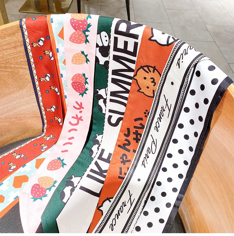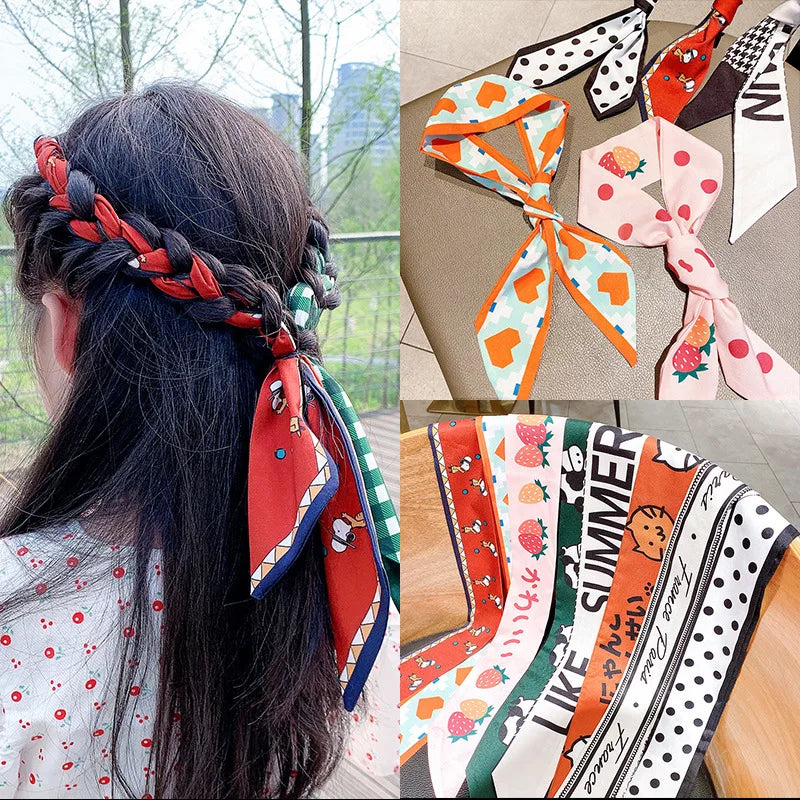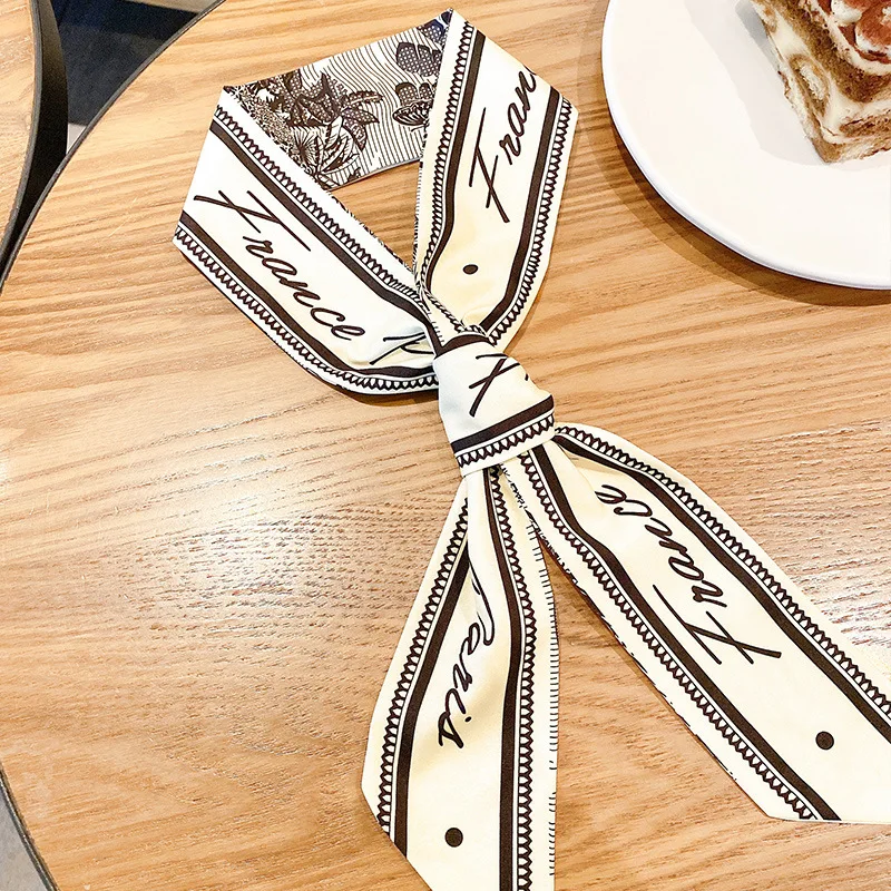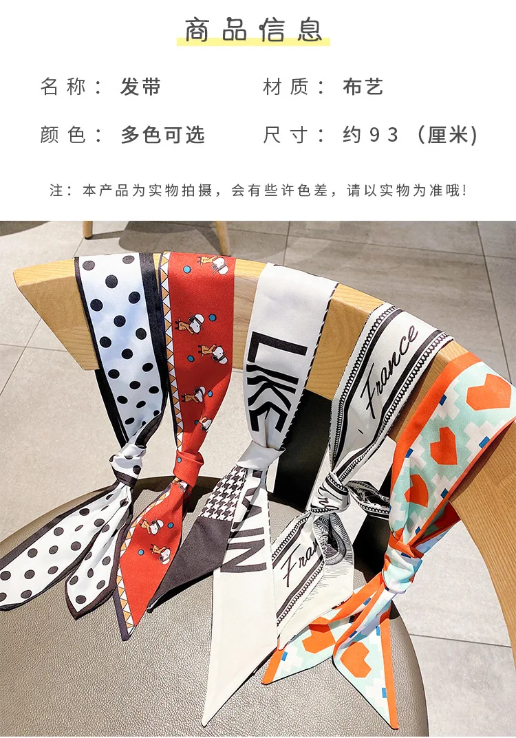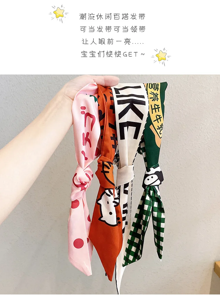 Fashion Printing Long Ribbon Silk Scarf Headband for Women Elegant Tie Ponytail Bow Headband Hair Tie Резинки Для Волос