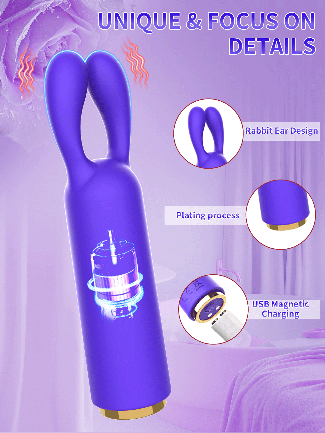 Female Clitoral Vibrator G-spot Nipple Rabbit Ear Dildo Stimulator 10 Vibration Modes Massager Adult Couple, Female Flirting Use