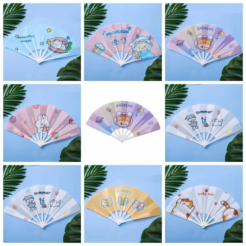 Gifts Folding 7-fold Fan Cute Cartoon PP Hand Held Fan Home Decoration Plastic Cartoon Folding Fan