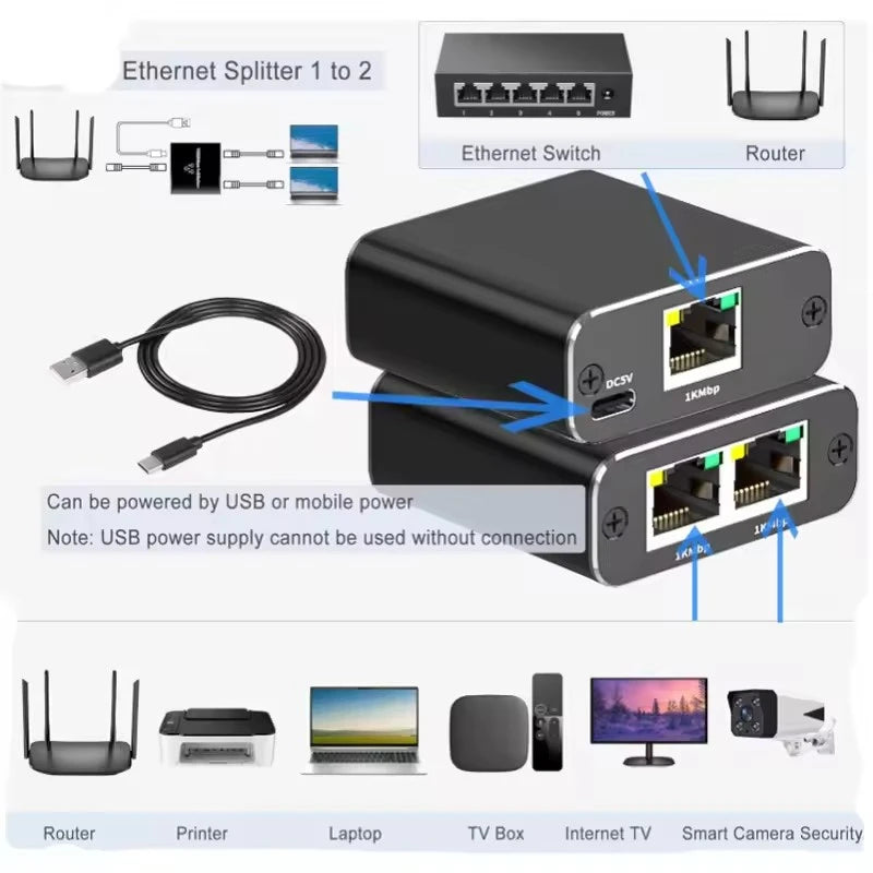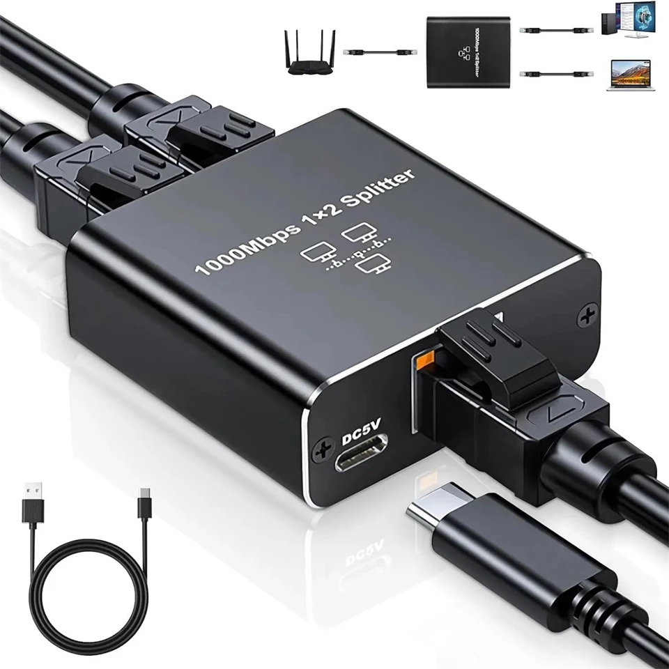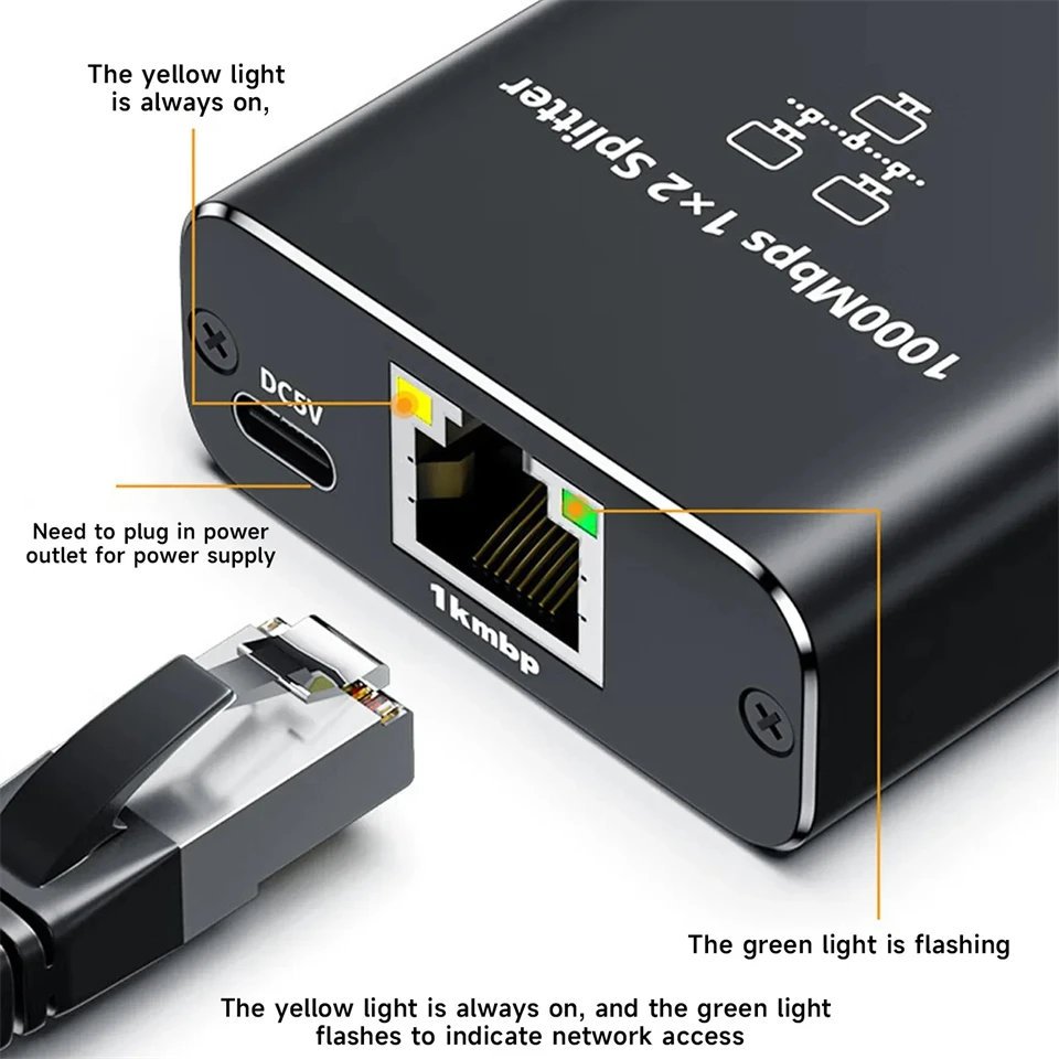 Gigabit 1000Mbps Network Splitter 1 IN 2 Ethernet Adapter Lan Connector Switch Coupler for PC Laptop TV Box RJ45 Extender Plug