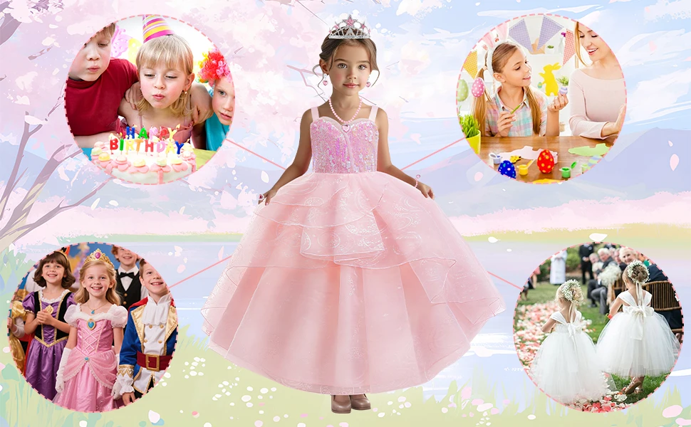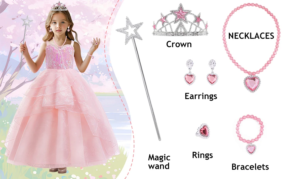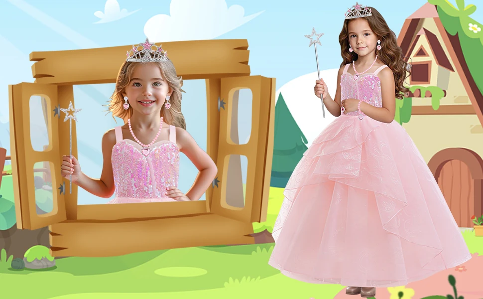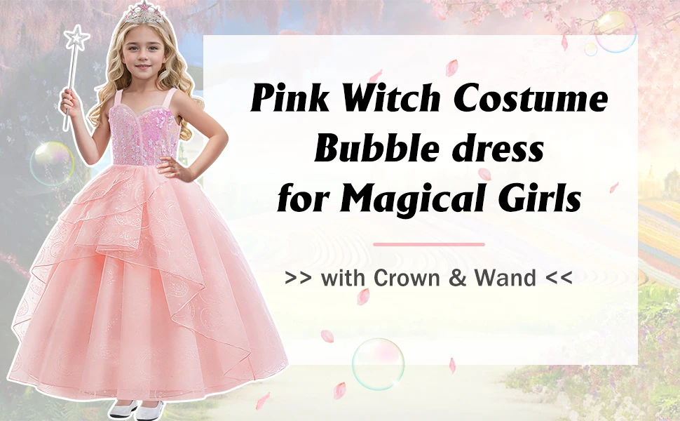 Good Witch Glinda Costume Pink Dress With Crown Magic Wand And Gloves For Wicked Girls Halloween Cosplay Birthday Prom Outfits