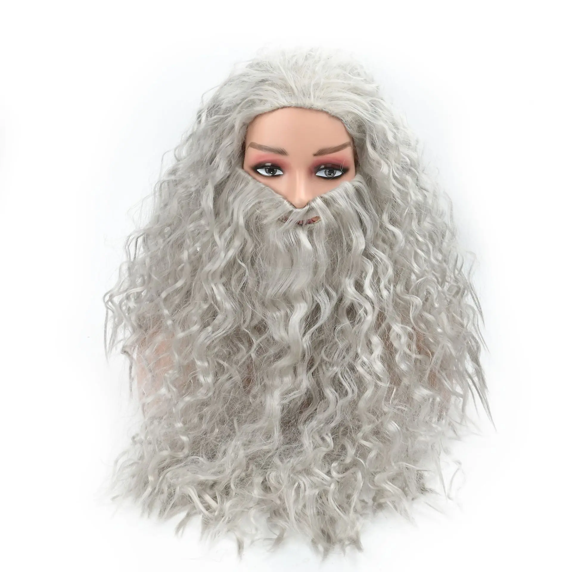 Halloween Mens Wizard cosplay wig grey hair wig and beard Dumbledore Gandalf role play Grey hair Wizard costumes