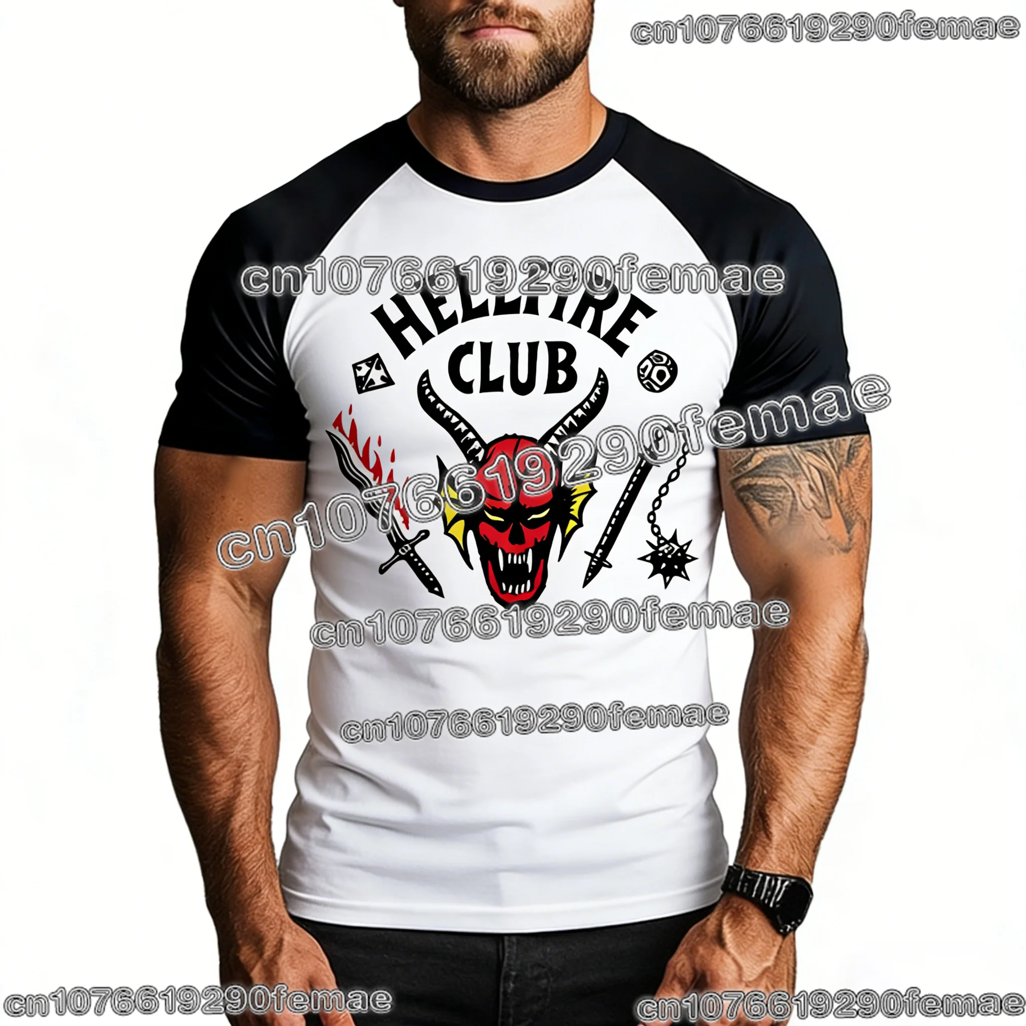 Hellfire Club Monster O-Neck Graphic Short Sleeve T-shirt for Men & Women Summer Streetwear Comfortable High-Quality Top