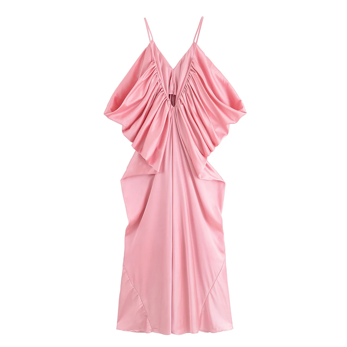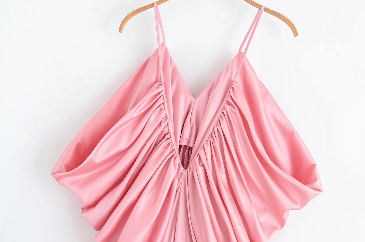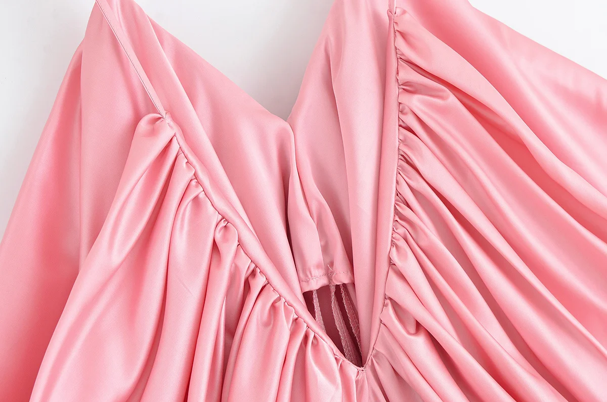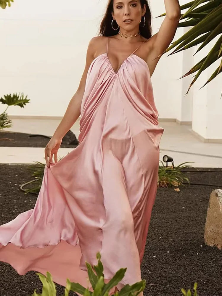 HH Summer Woman Holiday Dresses Party Midi Dress Women Elegant Silhouette Backless V-neck Pleated Design Chic Sexy Dresses