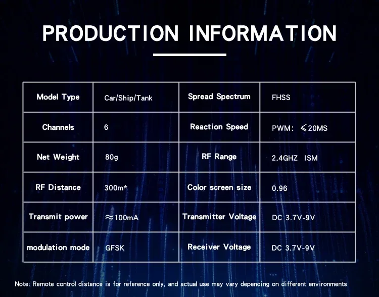 *Remote Control Distance is Based On Actual Usage,Different Receiver Antenna Models,Hull Characteristics Will Change,Marking Distance is For Reference Only.