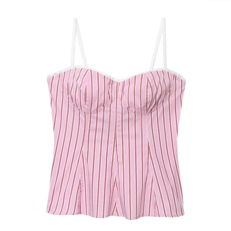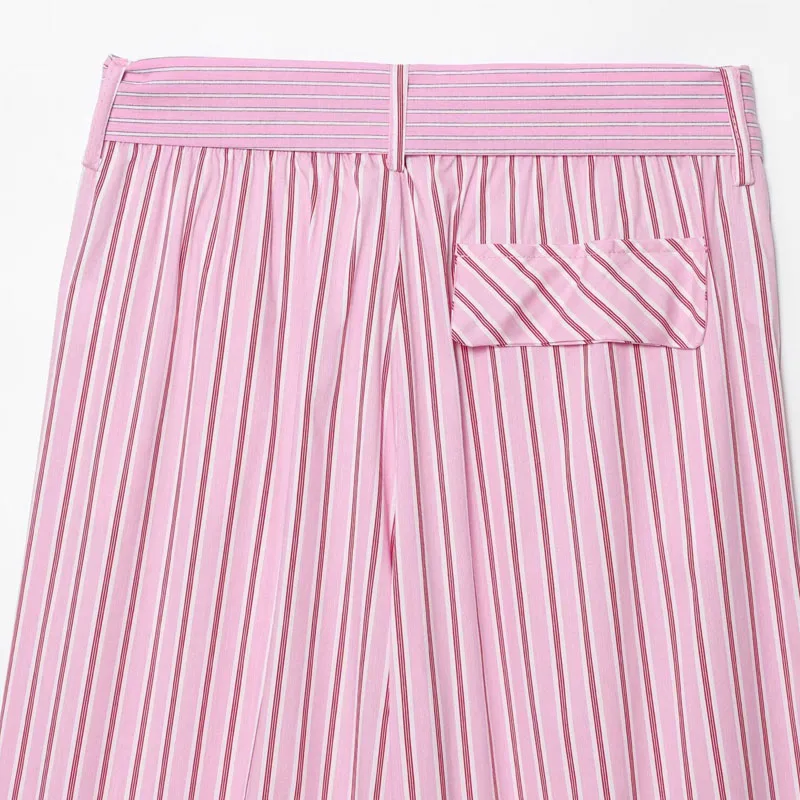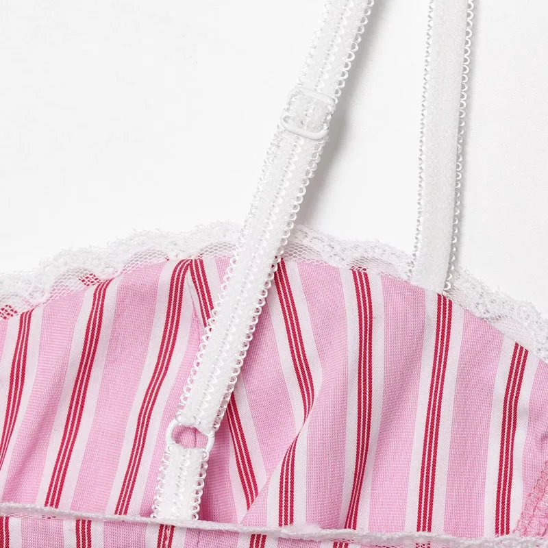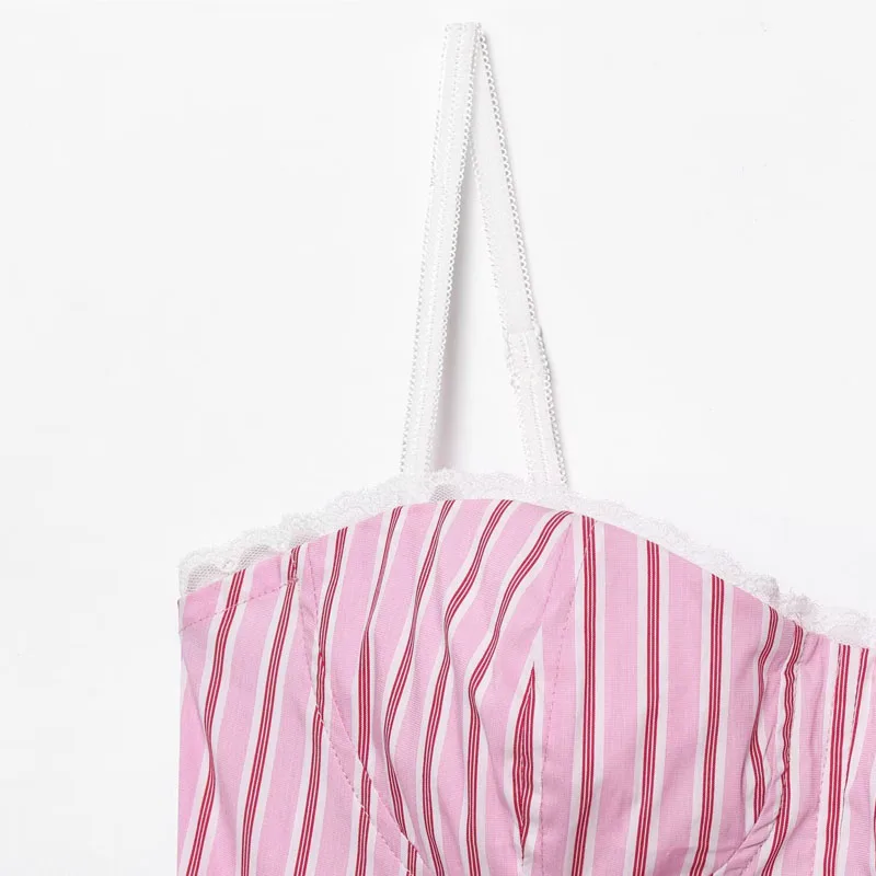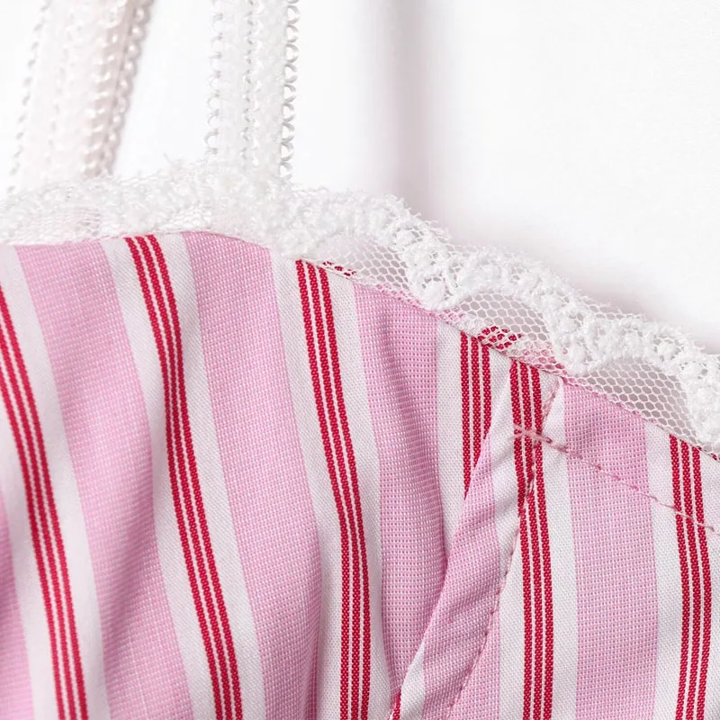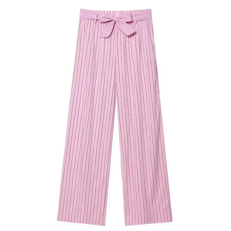 HXAO Summer Women's Two Pieces Set New Pink Striped Open Back Halter Top Pant Sets Crop Zipper Top With Lace Casual Women's Suit