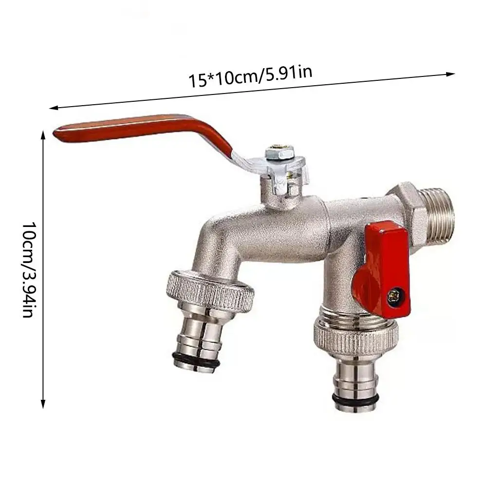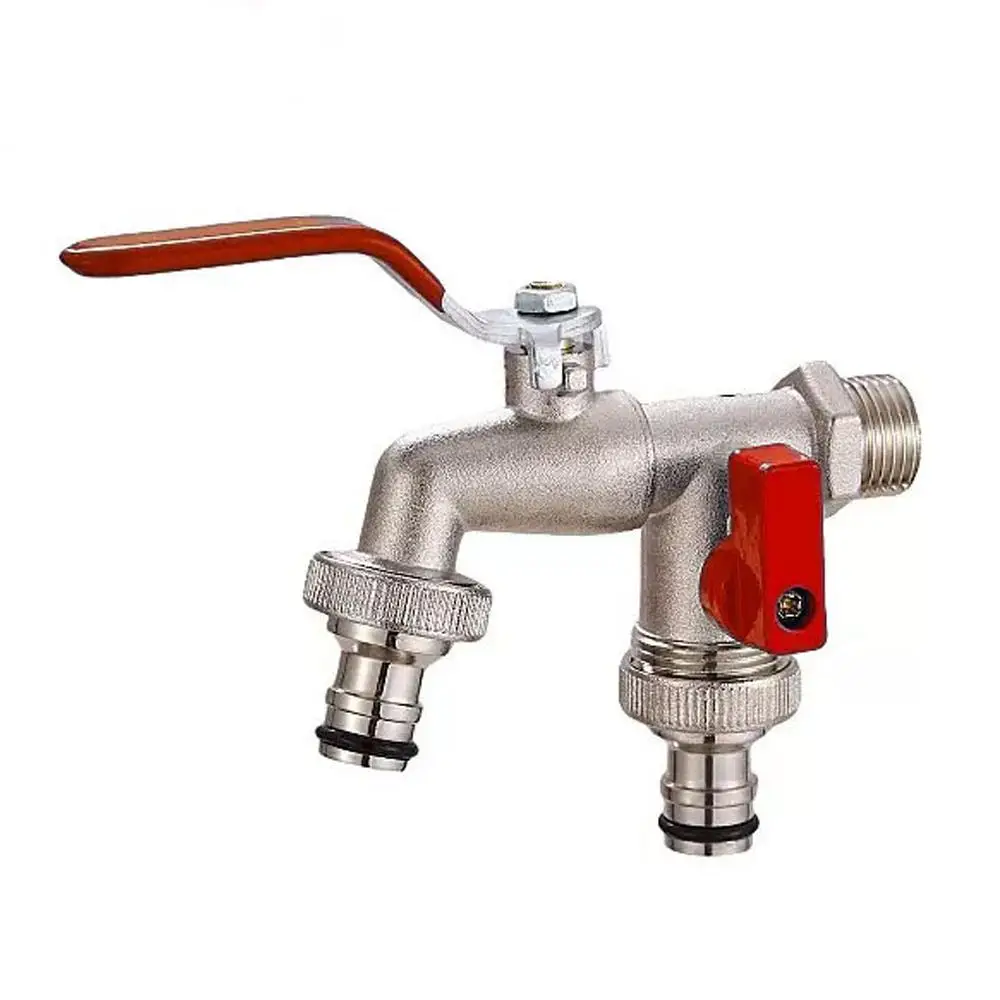 Industrial And Home Irrigation Zinc Alloy Garden Bibcocks 1 Inlet 2 Outlet Bibcock With Dual Nipple And Outdoor Balcony Faucet