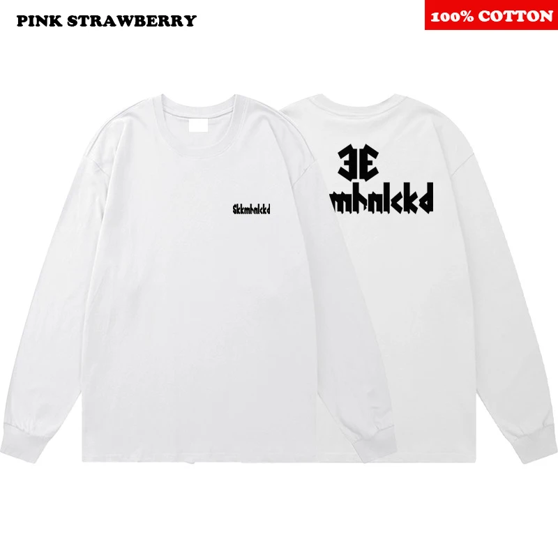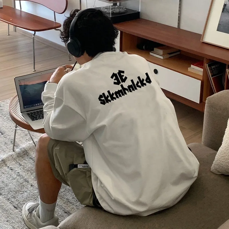 ins Letter Print T-shirt Men 2025 New Autumn 100% Cotton Oversize White O-Neck Long-sleeves T-shirt Loose Y2k Top Men clothing