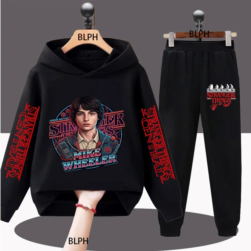 Kids Stranger Things Mike Wheeler Graphic Hoodie Set, Classic TV Show Inspired Casual Sweatshirt and Pants Outfit for Boys Girls