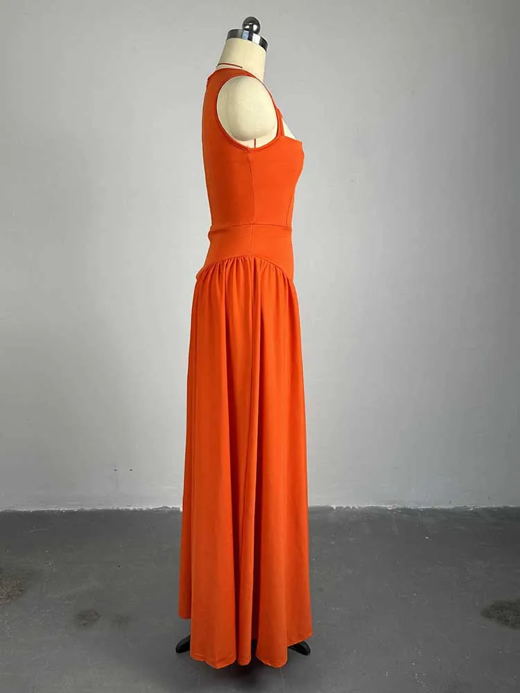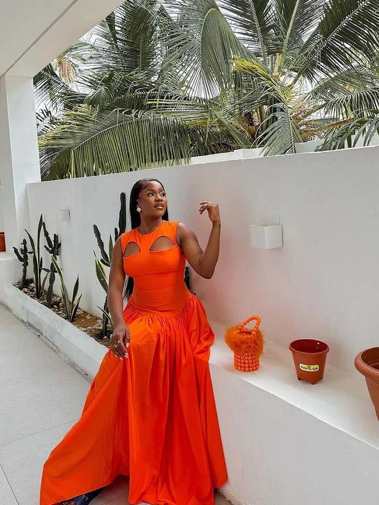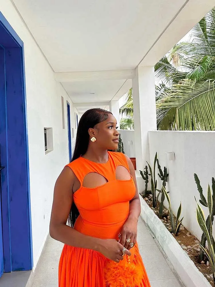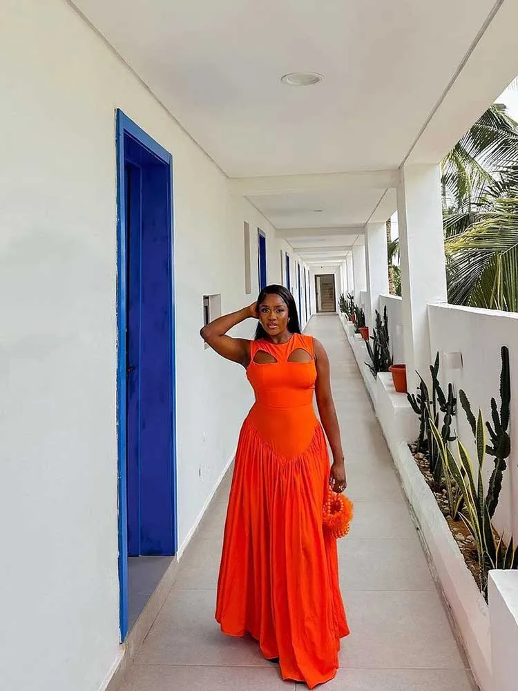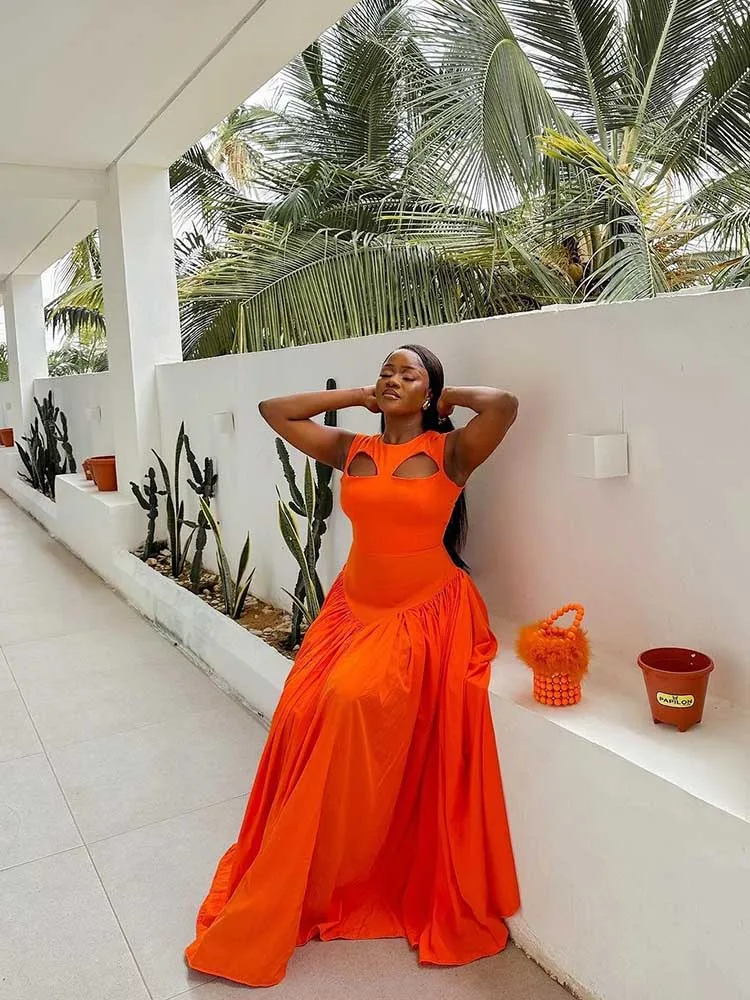 Long Summer Woman Dress Hollow Out Knitted Maxi Dress Beautiful Orange Dress for Women Elegant Party Wholesale Dropshipping