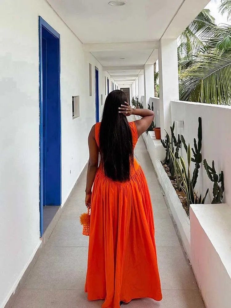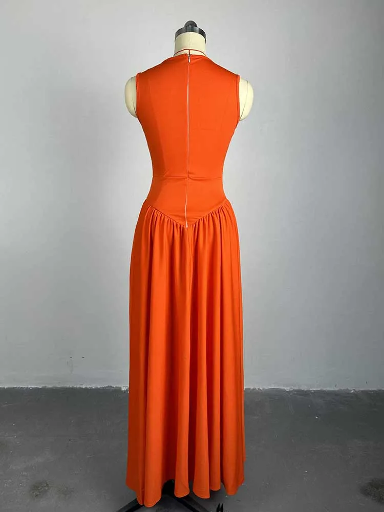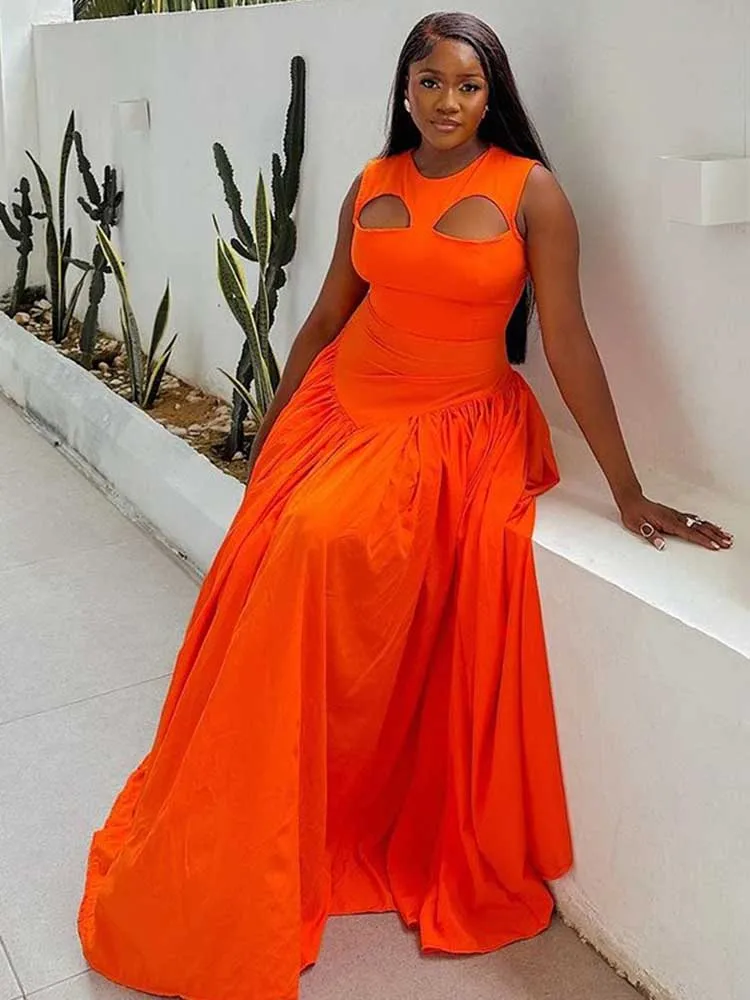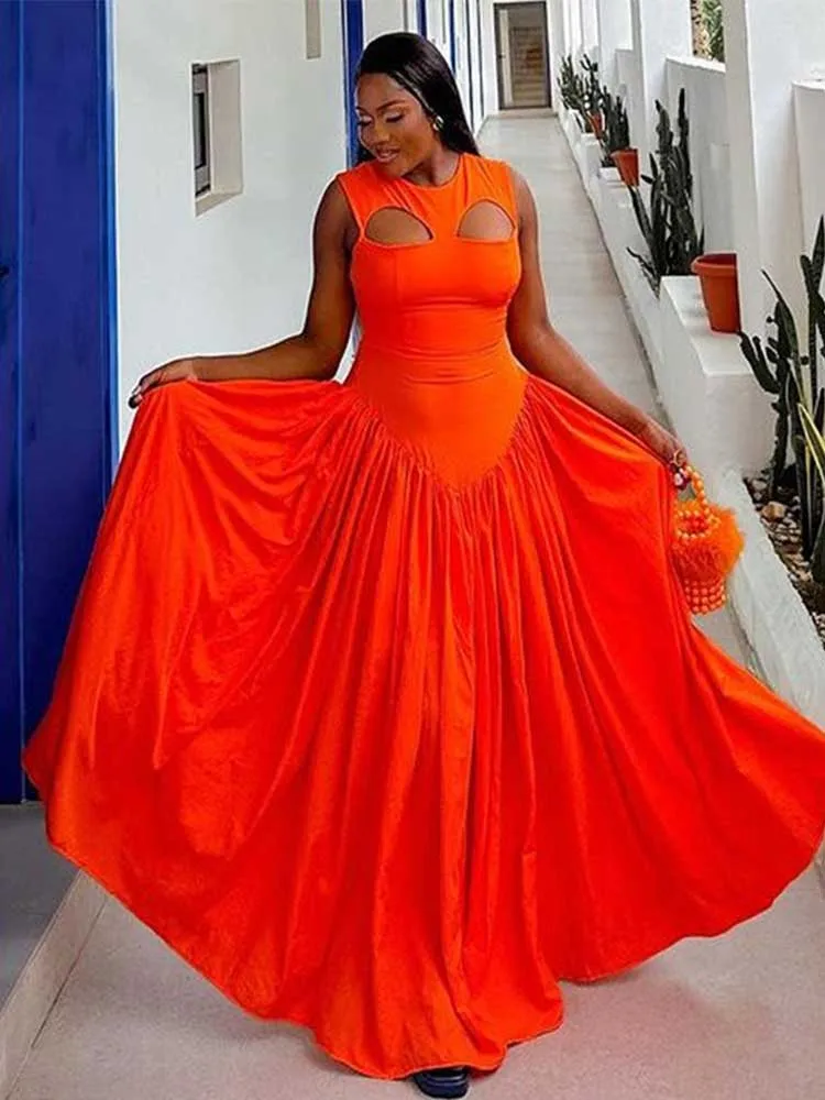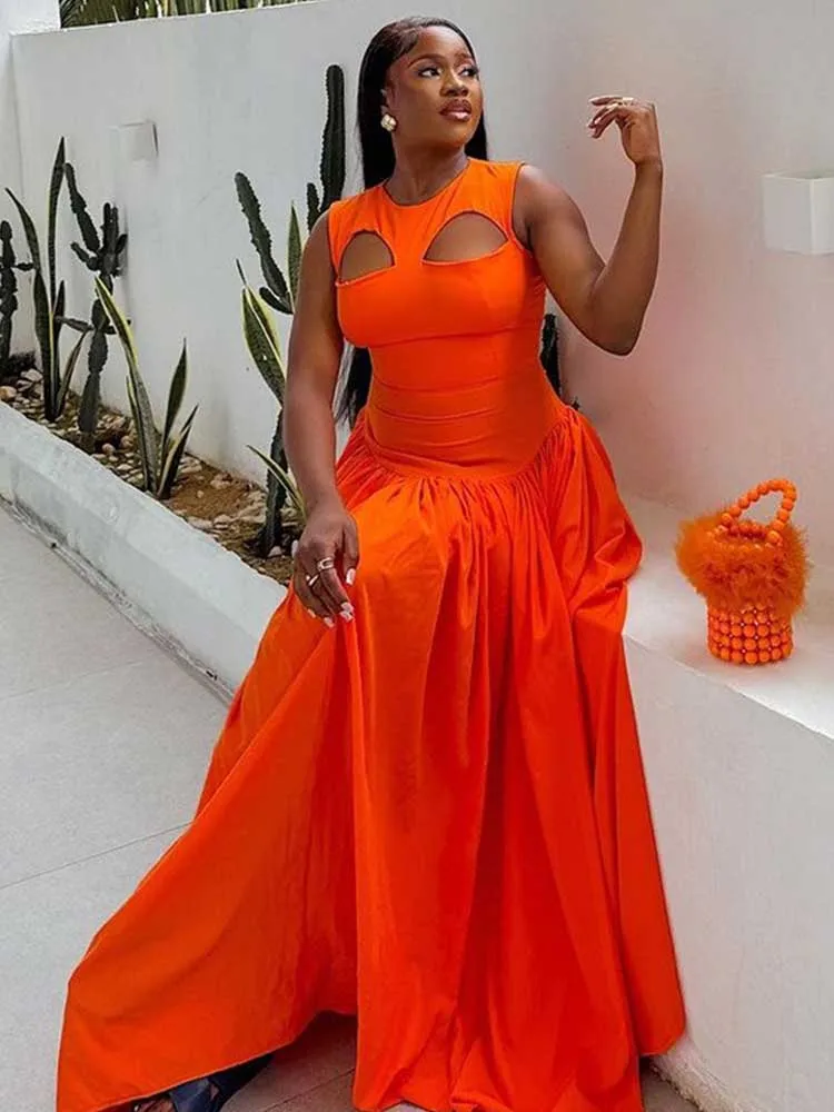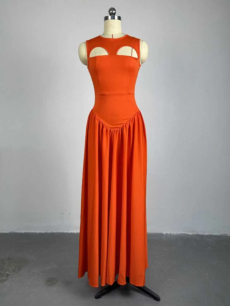 Long Summer Woman Dress Hollow Out Knitted Maxi Dress Beautiful Orange Dress for Women Elegant Party Wholesale Dropshipping