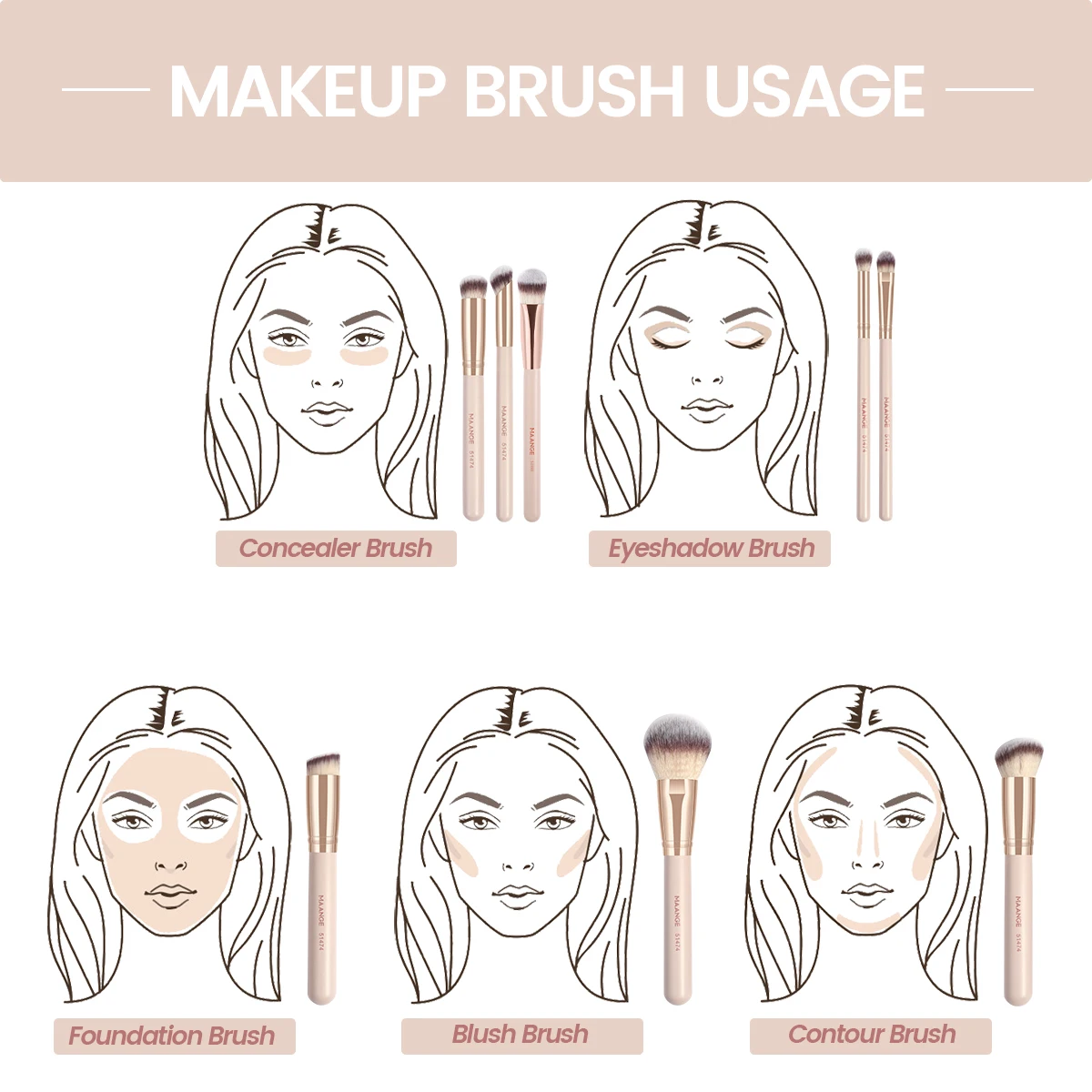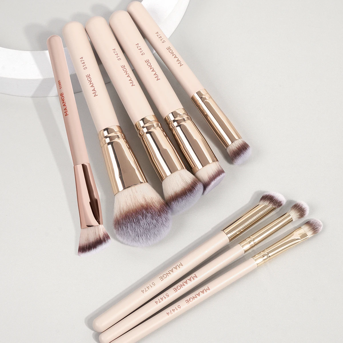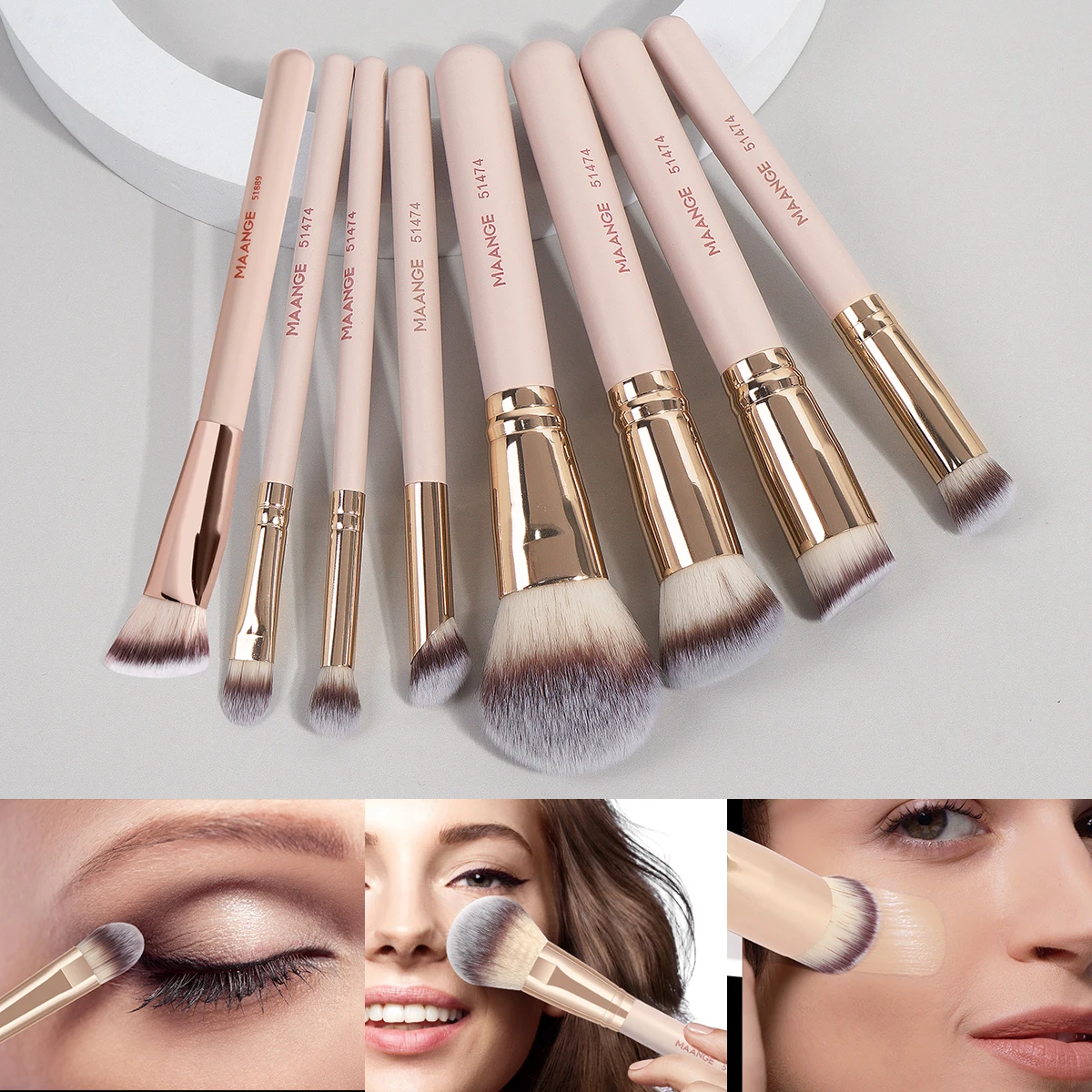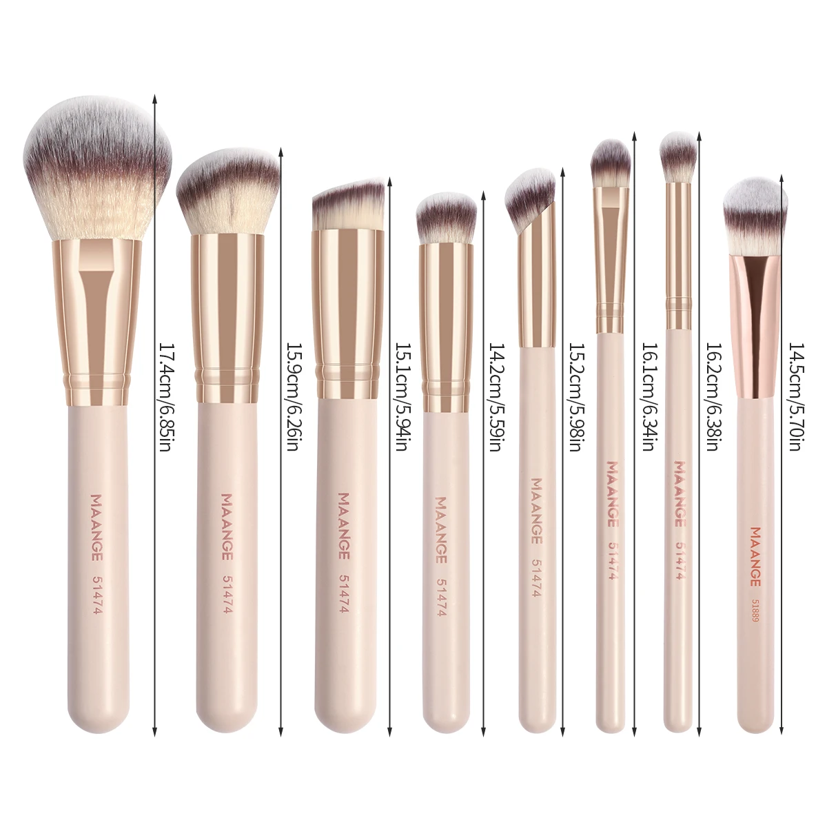 MAANGE 8pcs Makeup Brush Set Including Powder Blusher Foundation Makeup and Contour Brush Portable Travel Set for All Skin Types