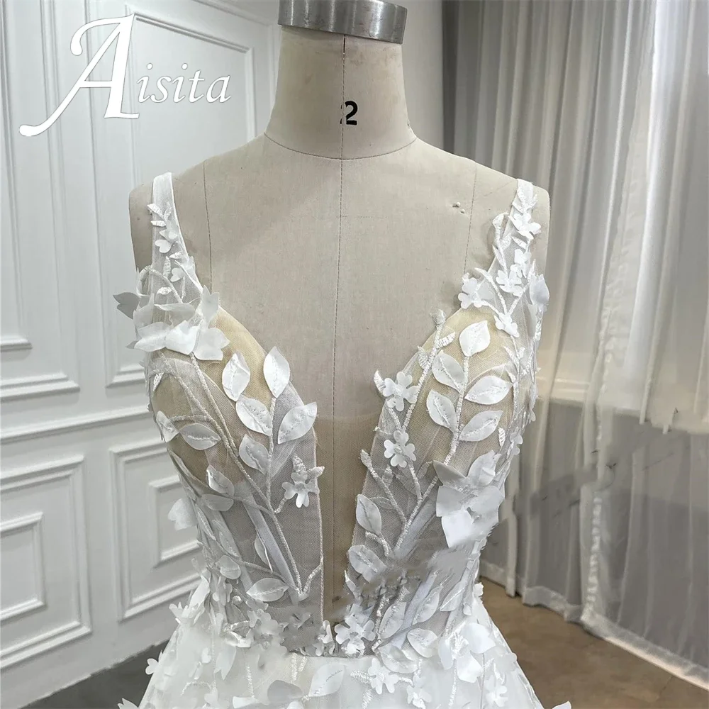 Modern Wedding Dresses For Woman 2025 Bridal V-neck Sleeveless A-LINE 3D Flower Appliques Vestidos De Novia Customized For Women