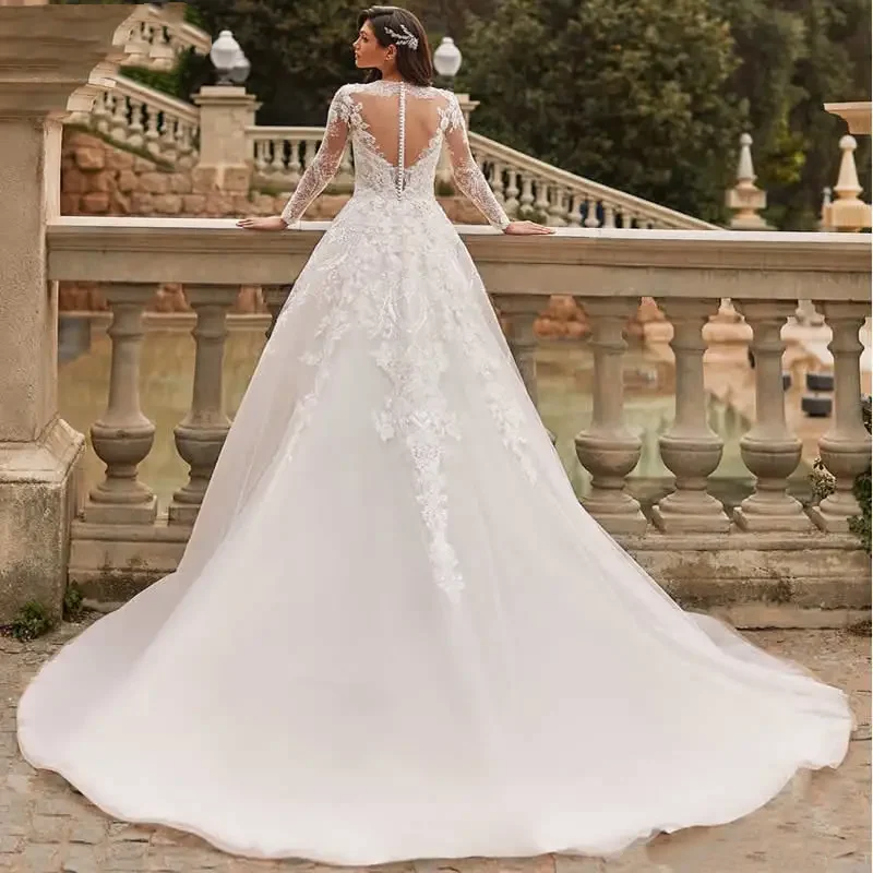 Modest Wedding Dresses Full Sleeves O-Neck Bridal GownsCustomized Lace Appliques Floor Length Robes Glamorous Vestidos De Novia