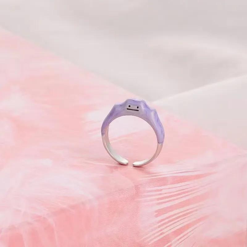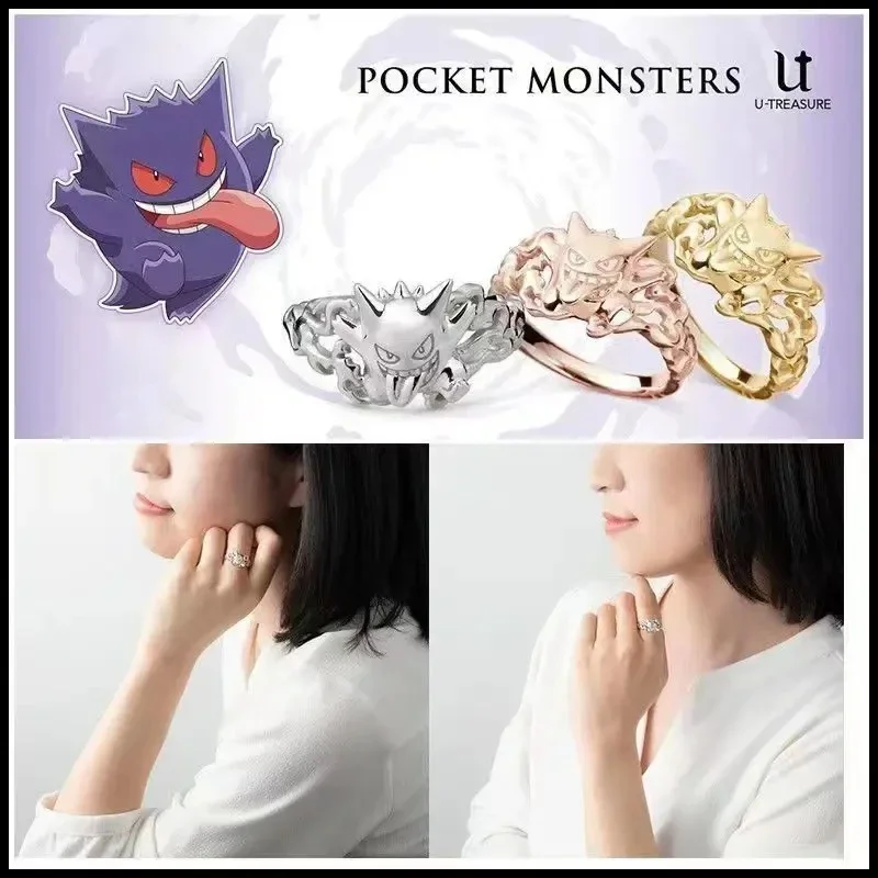 New Pokemon anime peripherals Dratini Gengar 925 silver ring fashionable cartoon accessories niche Christmas gifts for couples