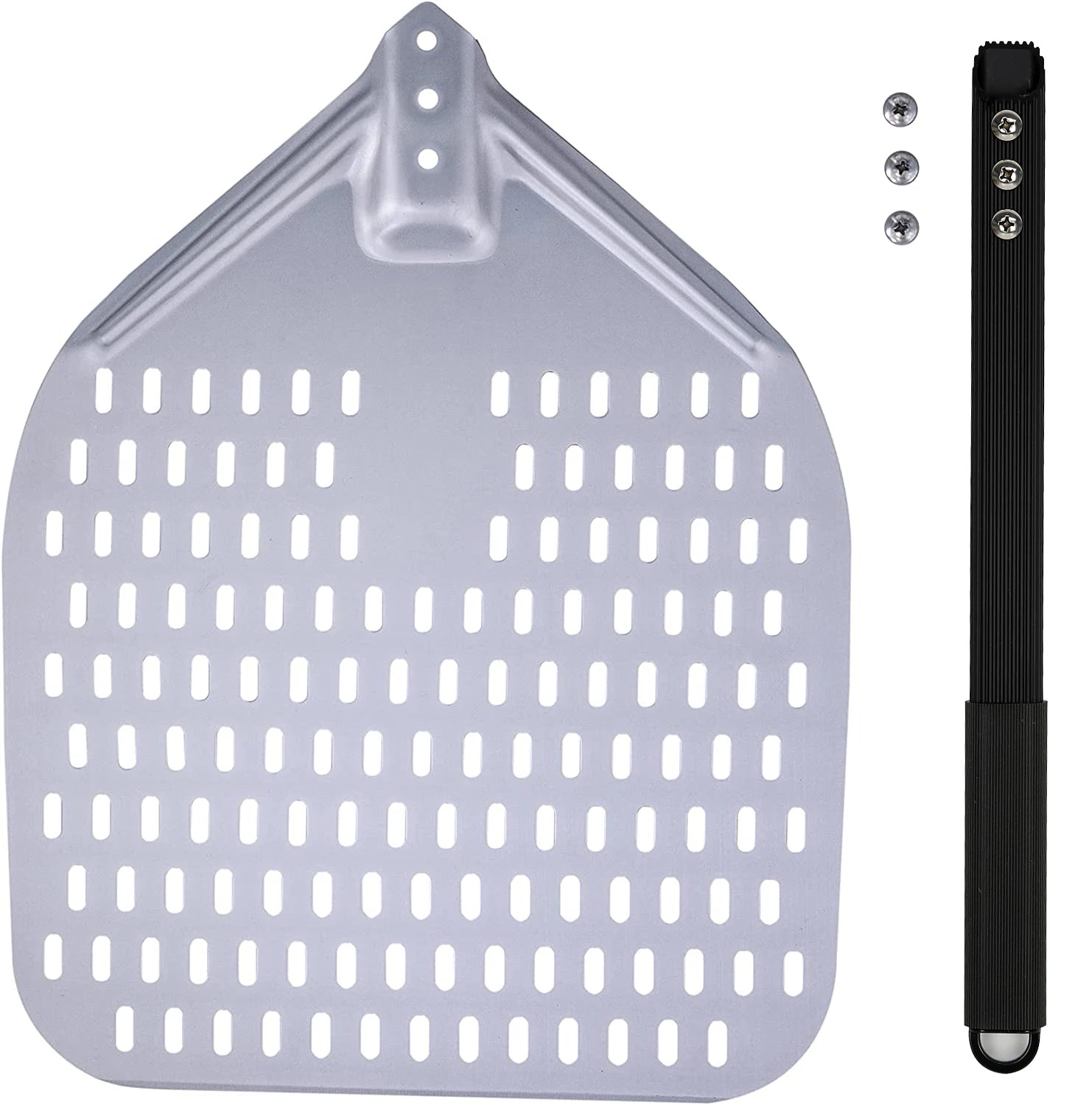 PizzAtHome 12/13/14 inch Pizza Peel Aluminum Alloy Pizza Shovel Pizza Peel Paddle Short Long Handle Anodize with Cutter Spoon