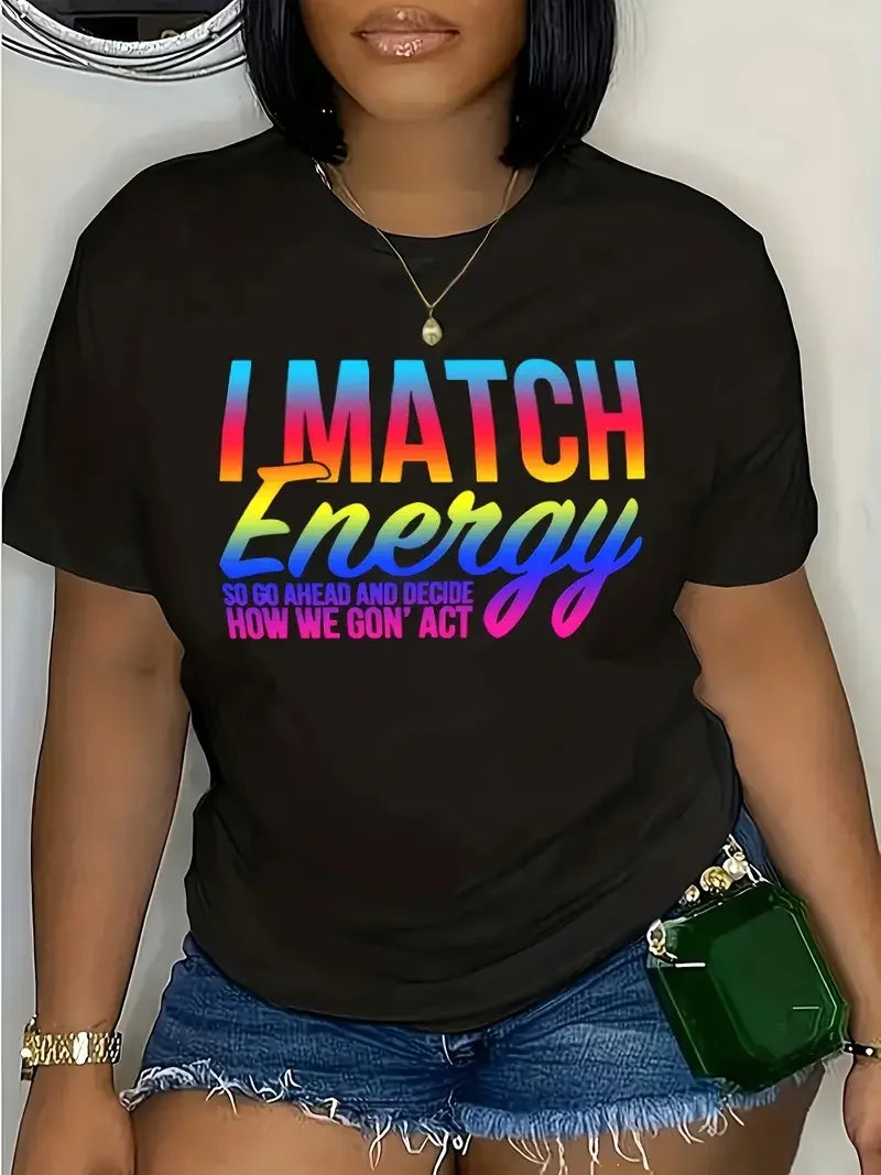 Plus Size Letter Print T-Shirt Casual Crew Neck Short Sleeve T-Shirt Women's Plus Size Clothing