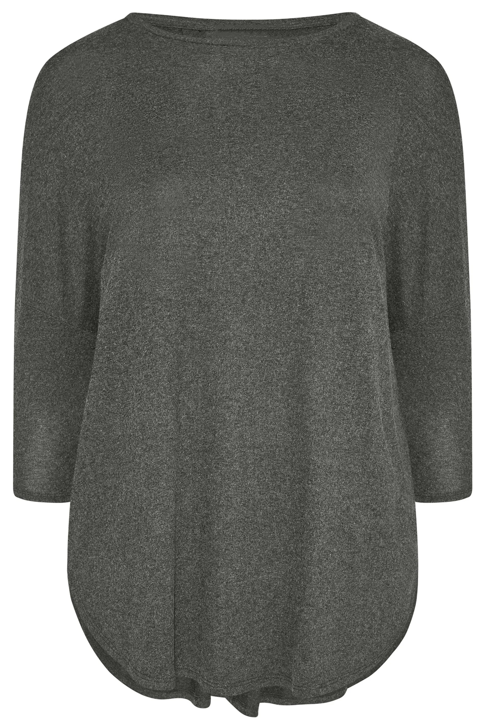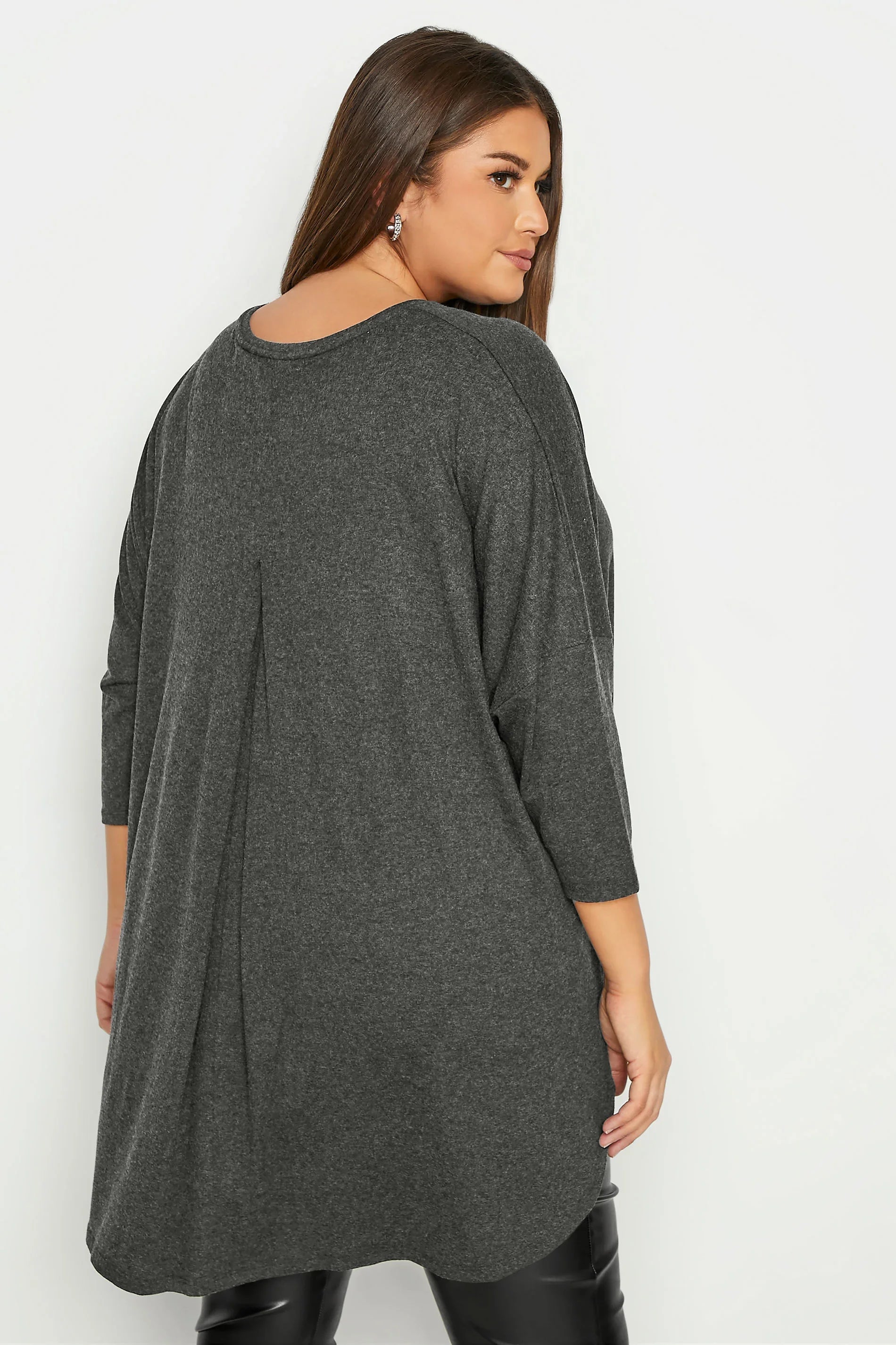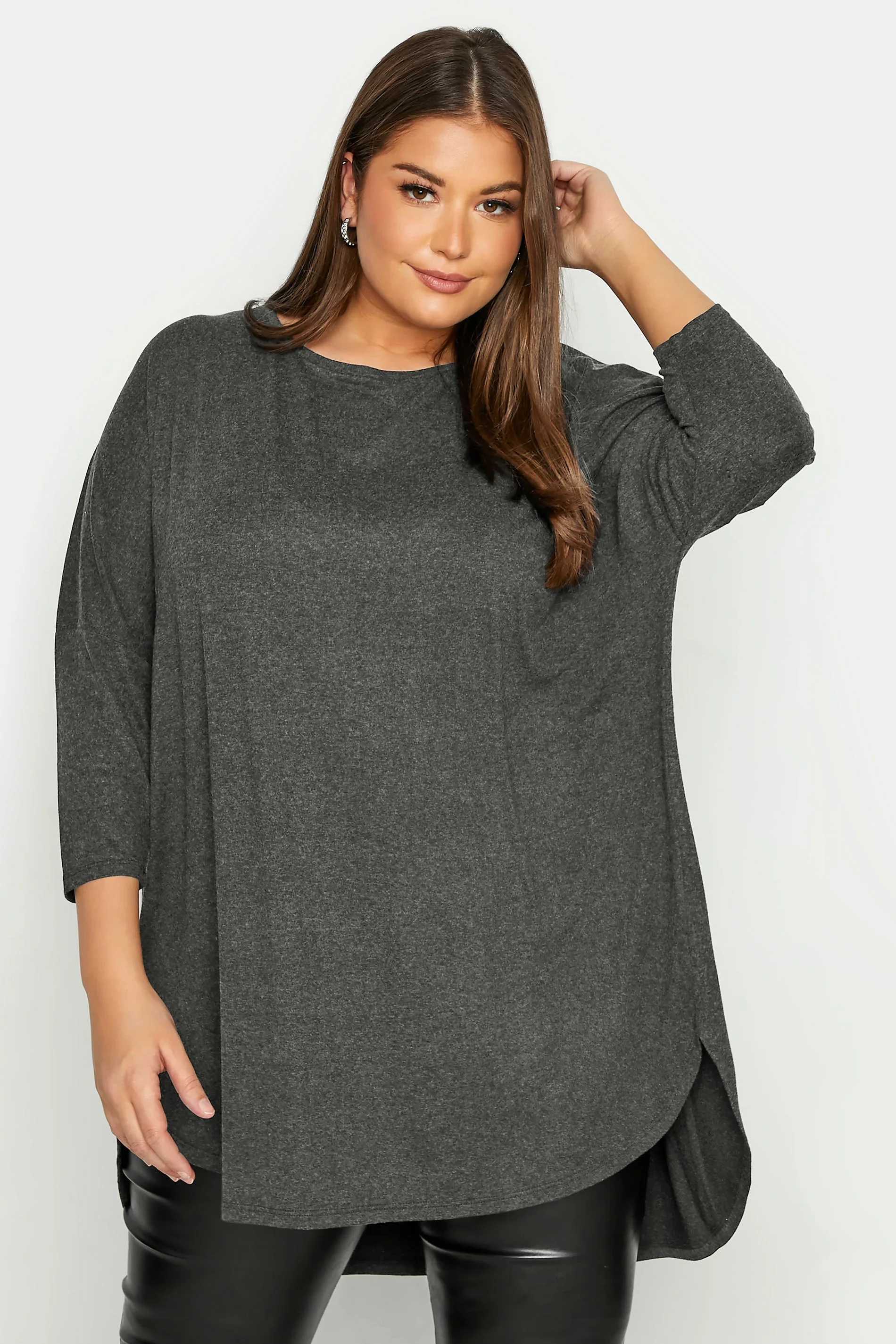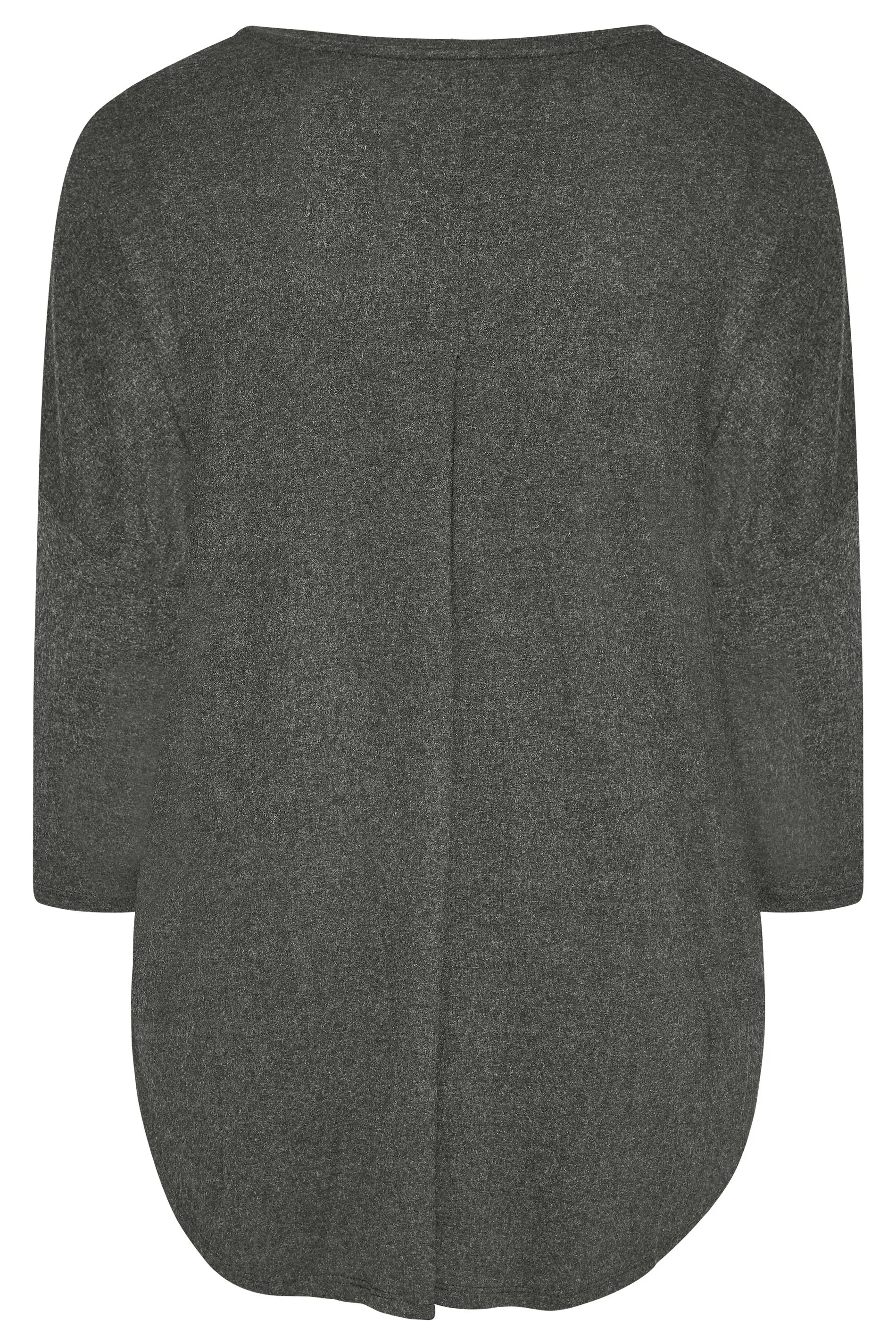 Plus Size Spring Autumn Elegant Hi Low Tunic 3/4 Batwing Sleeve Long Loose Blouse Dark Grey Pleat Back Large Size Casual Top 6XL