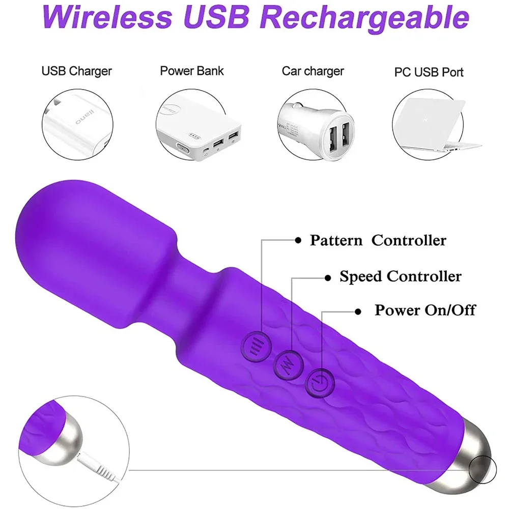 Personal Wand Vibrator with 8 Powerful Speeds 20 Vibration Modes, Cordless Magic Electric Massage Portable Rechargeable