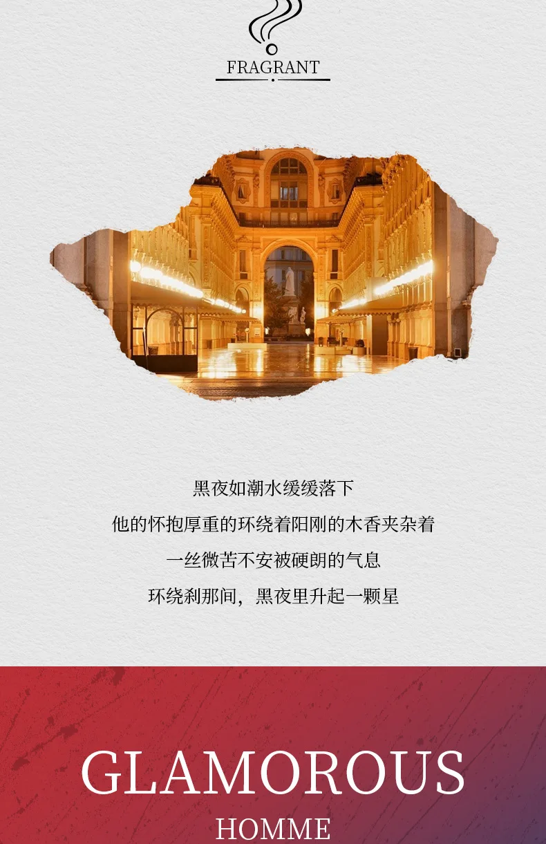 Smell: Cologne, patchouli, lemon, sandalwood, citrus, clove, cardamom, amberg