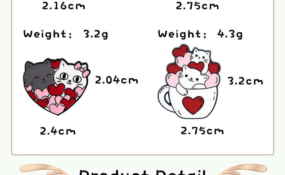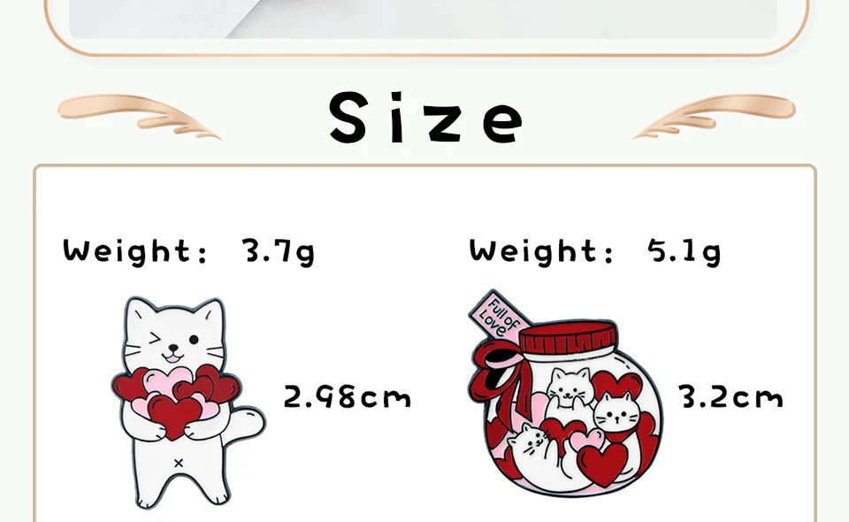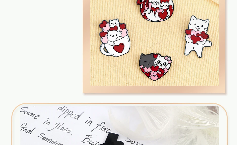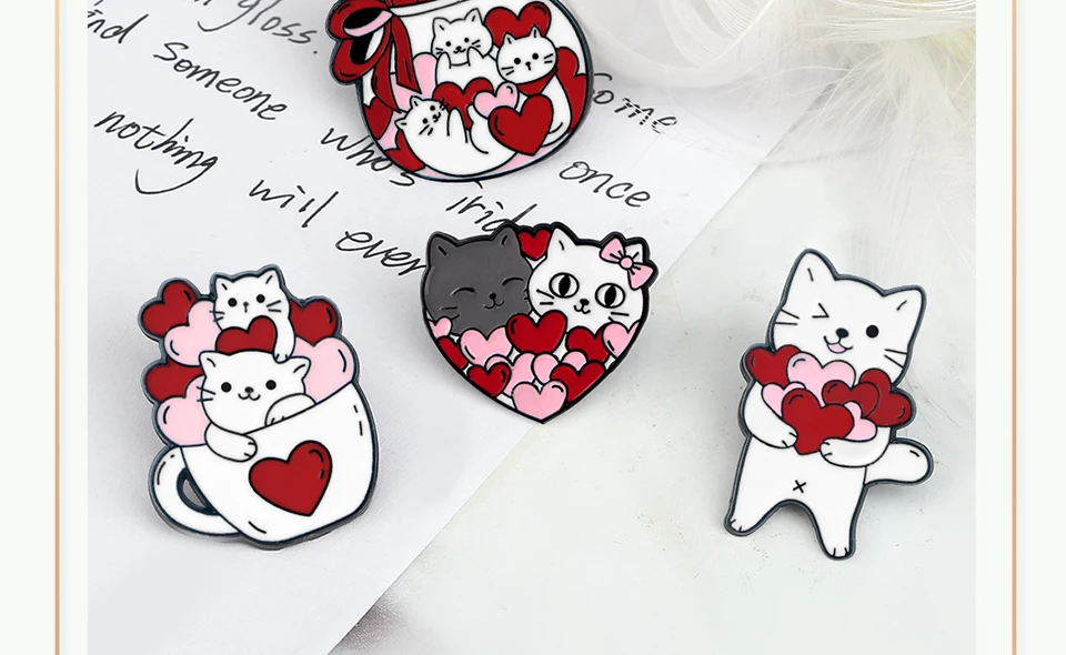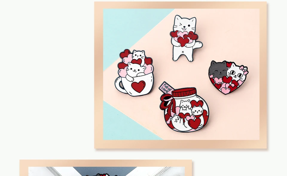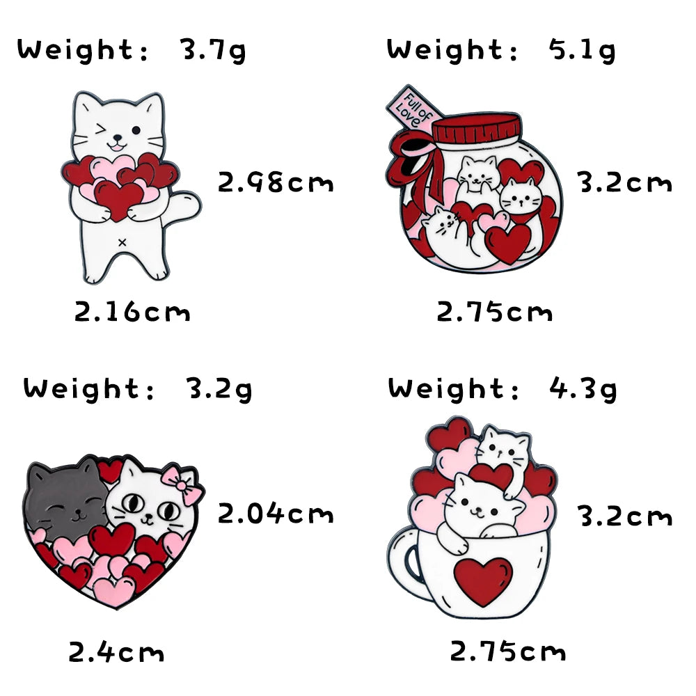 Romantic Candy Cats Brooch for Couples Cute 'Full with Love' Kitties Wink Enamel Pin Cartoon Animal Badge Valentine's Day Gifts