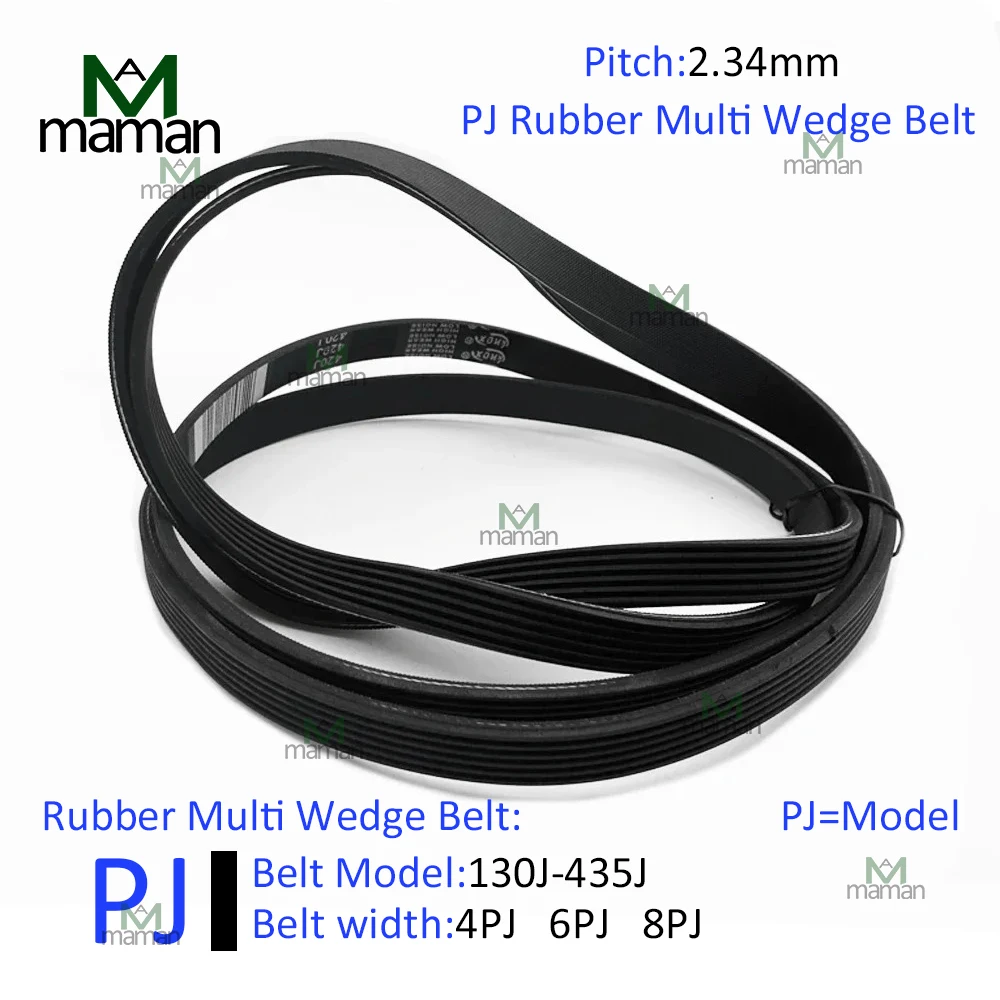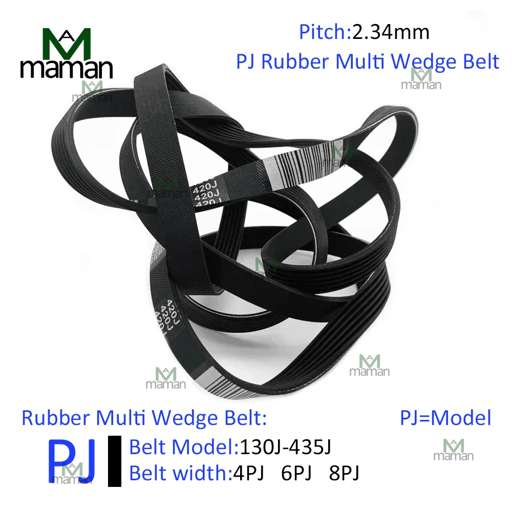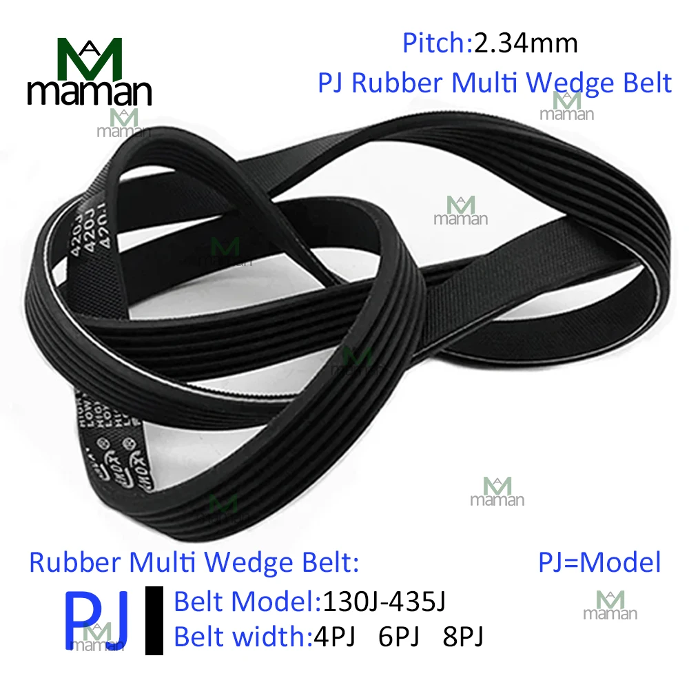 Rubber Multi Wedge PJ Type Multi Groove Belt Models PJ130~PJ435 Multi Groove Transmission Belt Wedge Number 4/6/8 Pitch 2.34mm