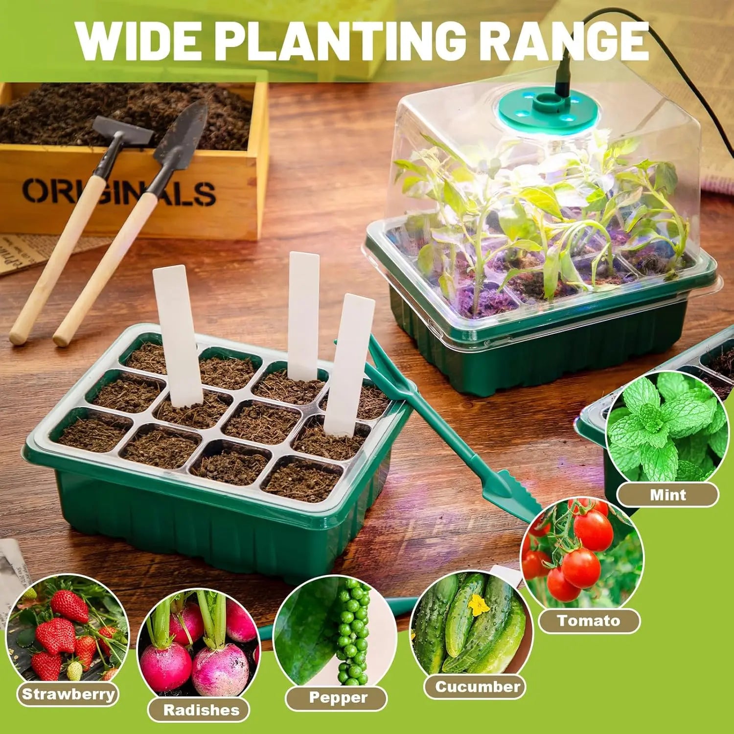 Seed starter tray with grow light, 2 seed germination kits, dome with adjustable humidity, seedling starter tray for home use