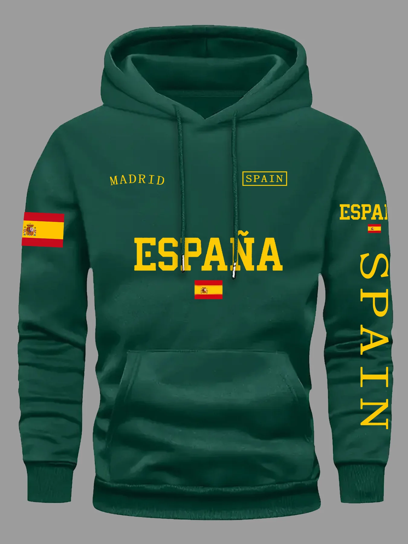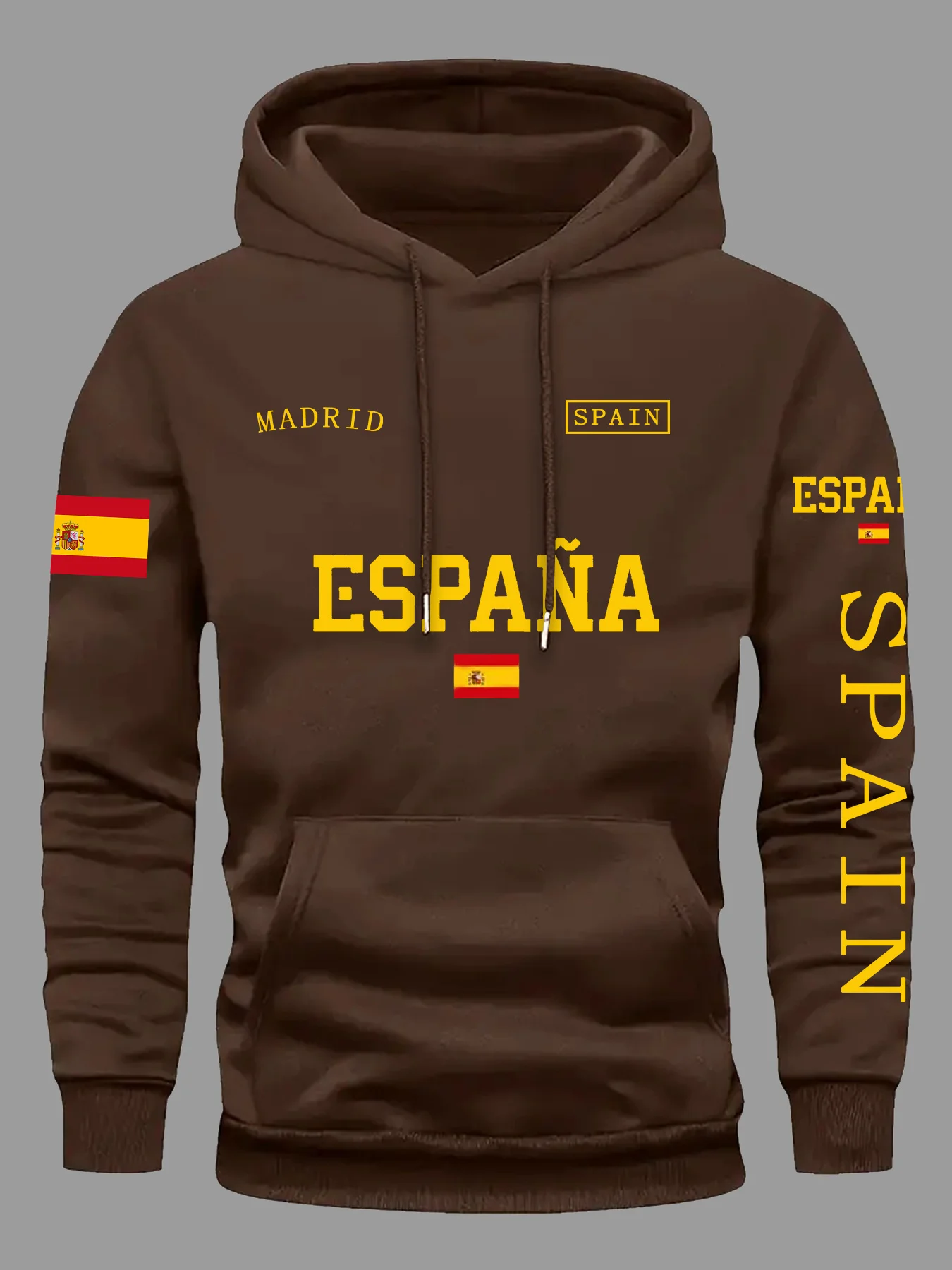 Spanish Flag Graphic Print Men Women Hooded Sweatshirt Autumn Winter Daily Outdoor Vacation Fitness Casual Loose Warm Sportswear