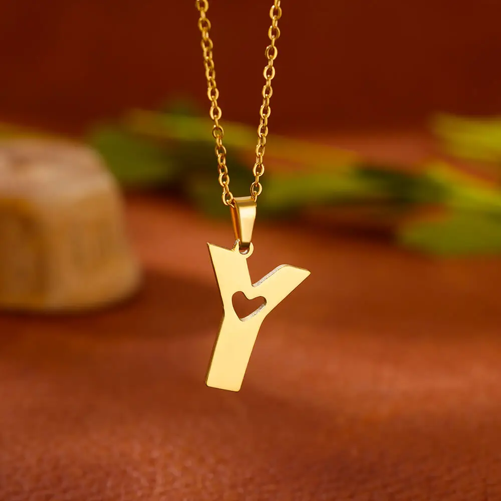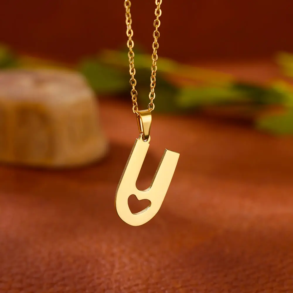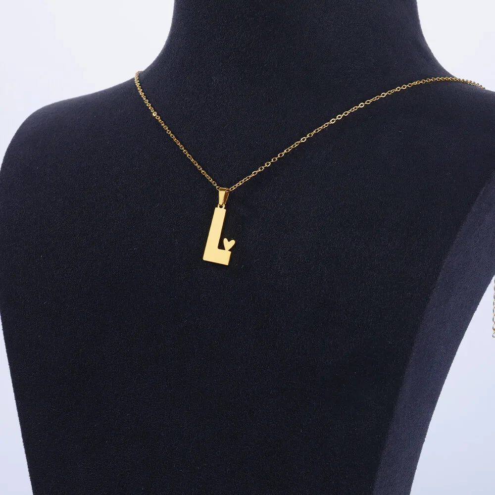 Stainless Steel Heart Letter Pendant Necklaces for Women Men Gold Color Initials Necklace Valentine's Day Jewelry Couple Gift