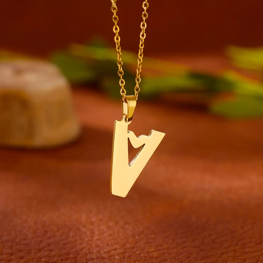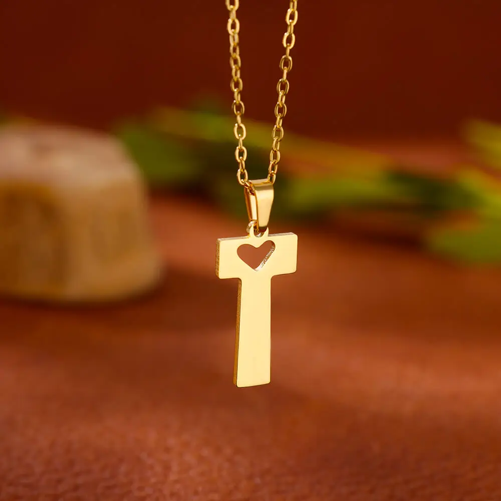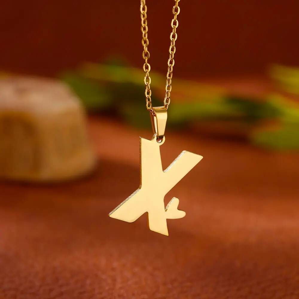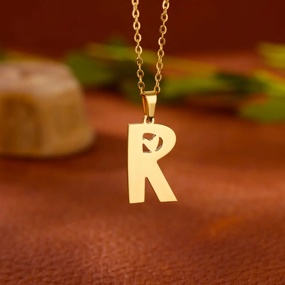 Stainless Steel Heart Letter Pendant Necklaces for Women Men Gold Color Initials Necklace Valentine's Day Jewelry Couple Gift