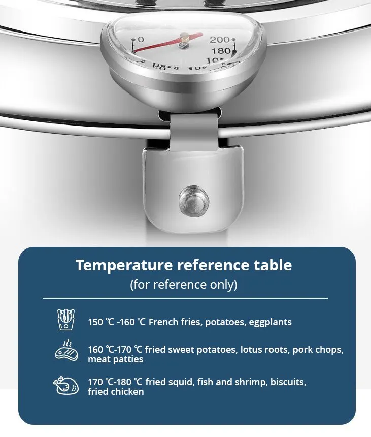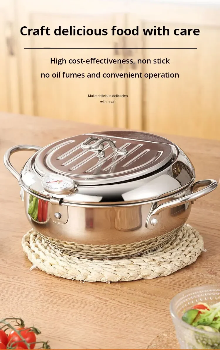 Stainless Steel Oil Pan with Thermometer Multiple Sizes Fryer Thermometer Cover for Tempura French Fries Home Kitchen Frying Pan