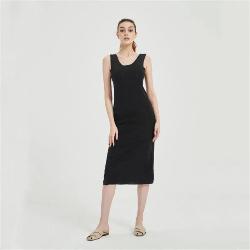 Summer Lady Ice Silk Without Trace Slips Under Dress Large Size Tank Long Midi Dress Petticoat U-neck Vest Nightgown Long Skirt
