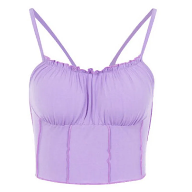 Summer Women Purple Vest Fashion Sleeveless Strapless Solid Ruffles Crop Tops Pullovers Ladies Tanks Women Camisole