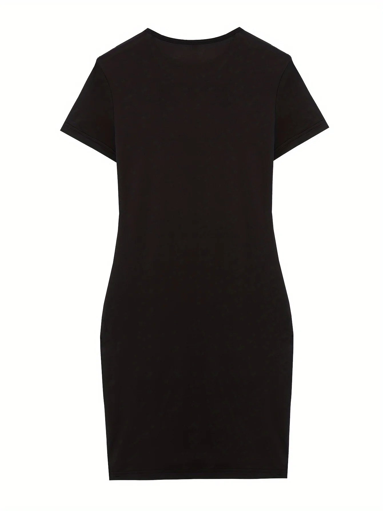 Summer women's BEAR cartoon print casual Bodycon Dress with Crew Nec slim fit short sleeved round neck T-shirt short mini dress