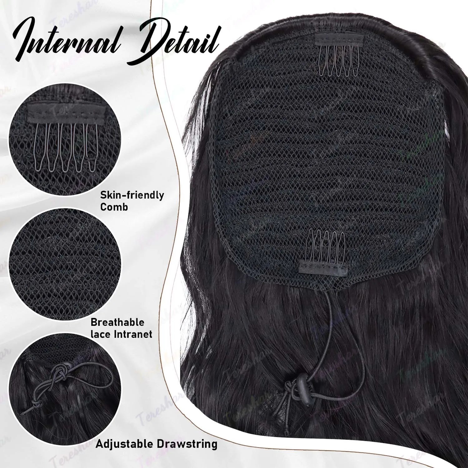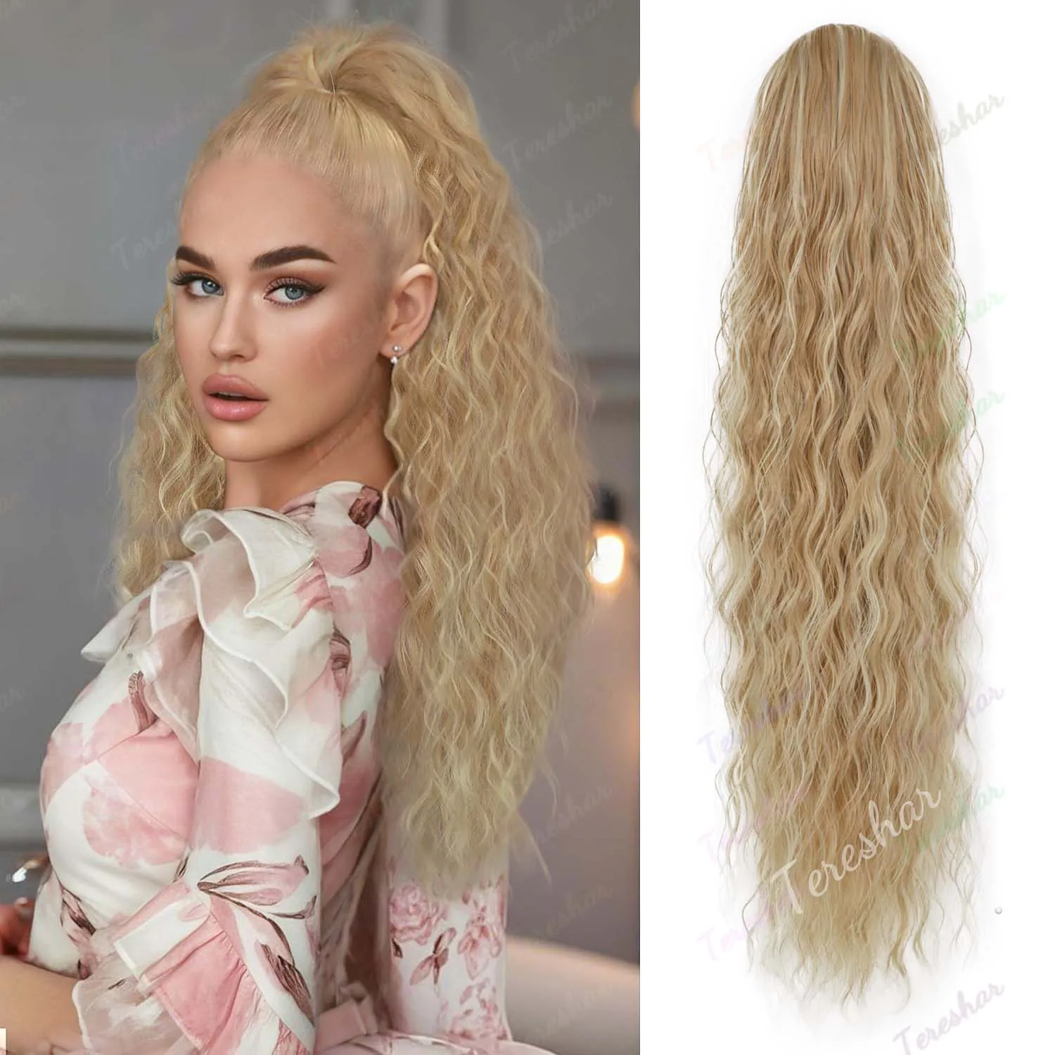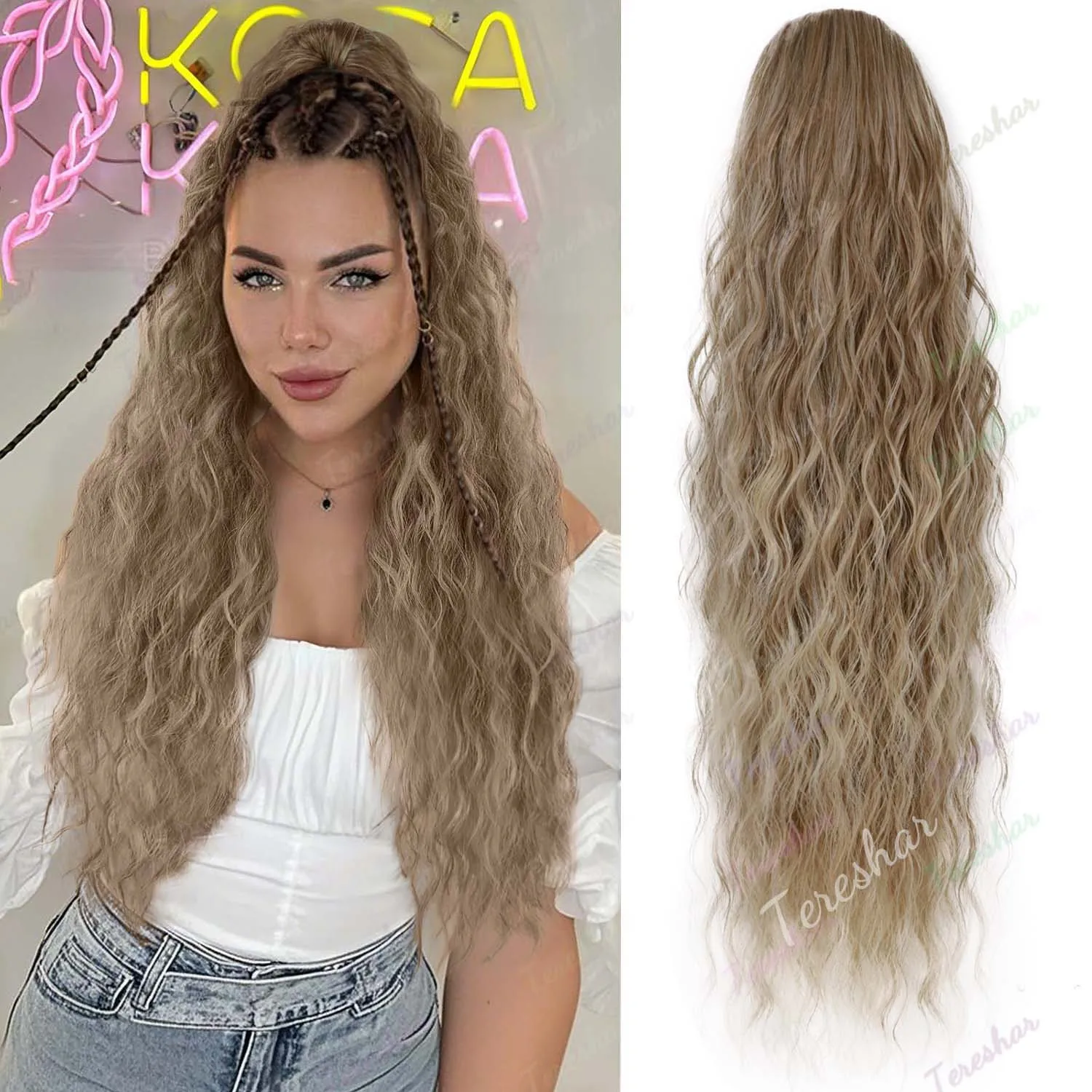 Synthetic 24inch Long Curly Wavy Ponytail Extension Drawstring Ponytail Hair Extensions for Women Hairpiece for Daily Use Party