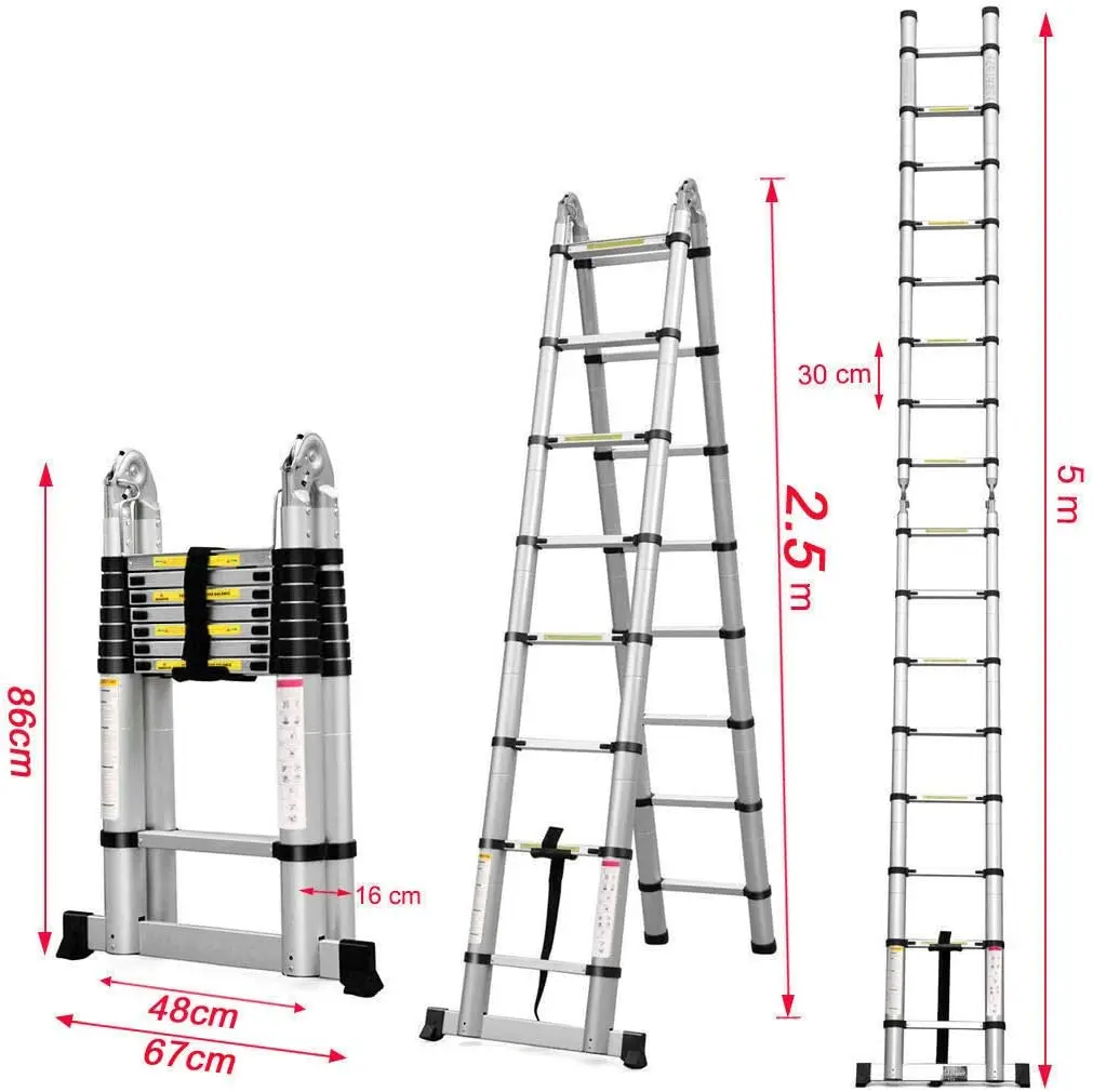 5M(2.5m+2.5m) Aluminium Telescopic Extendable Folding Ladder