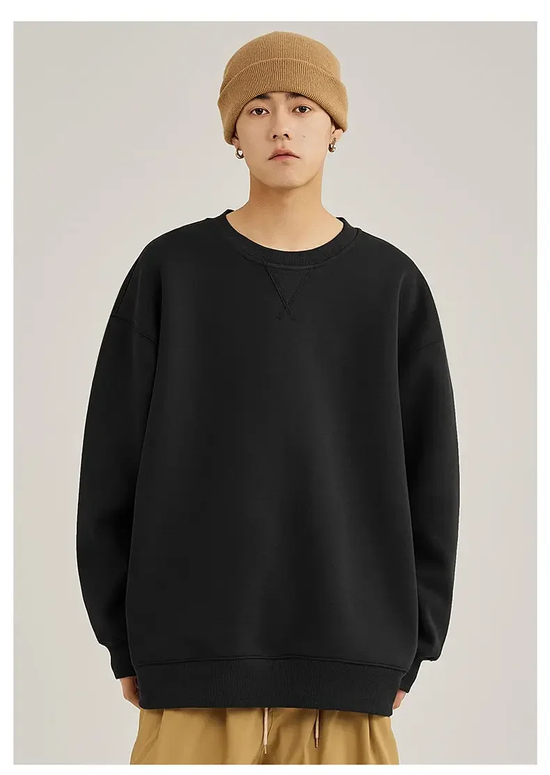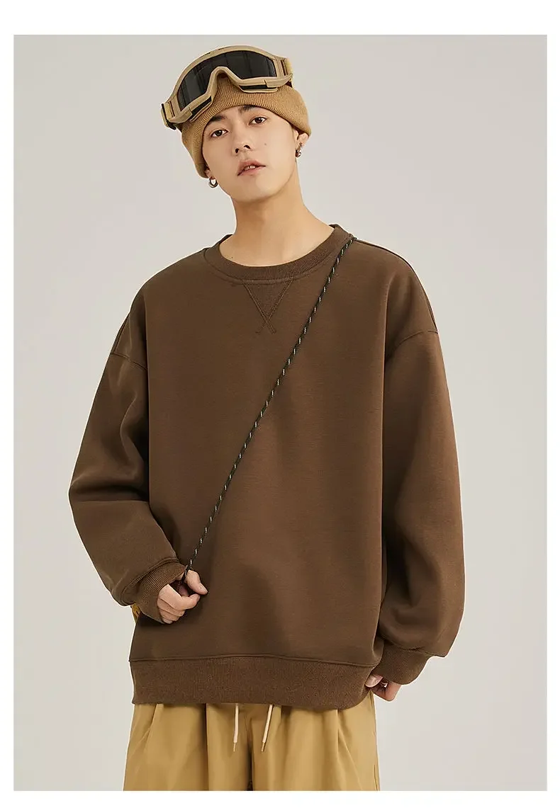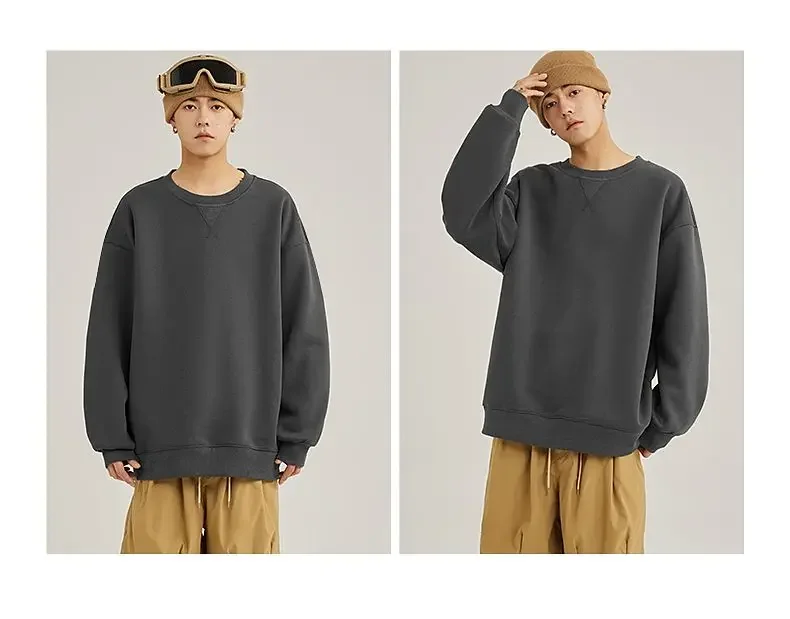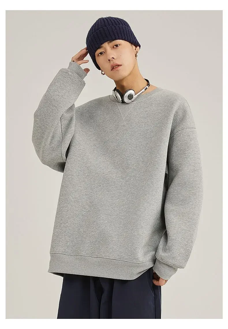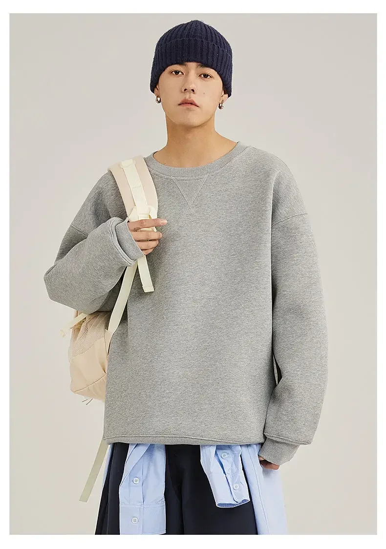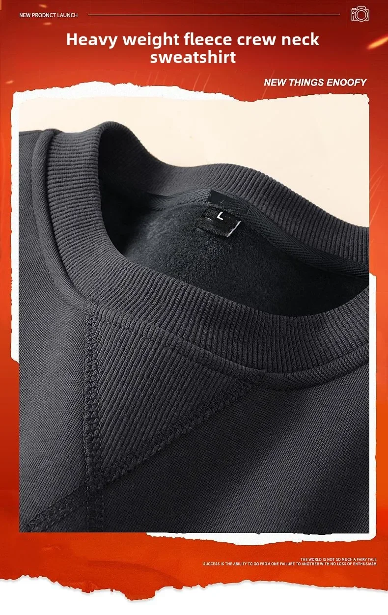 Thickened Fleece Hoodless Sweatshirt Men's Round Neck Winter Casual Loose Fit Cotton Polyester Long Sleeve Self Heating