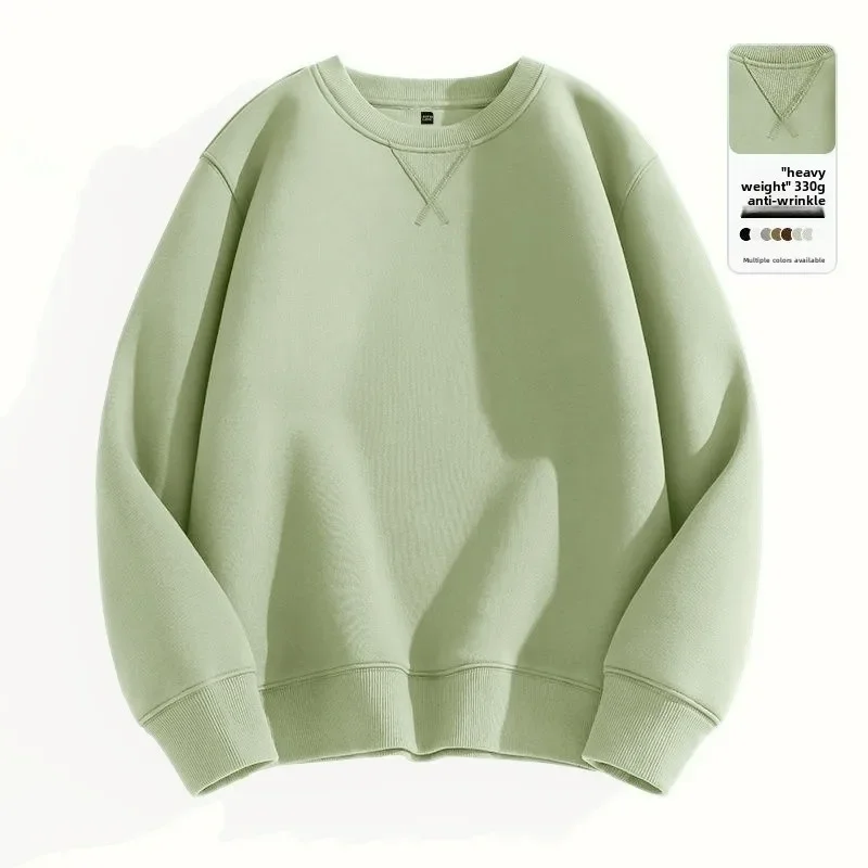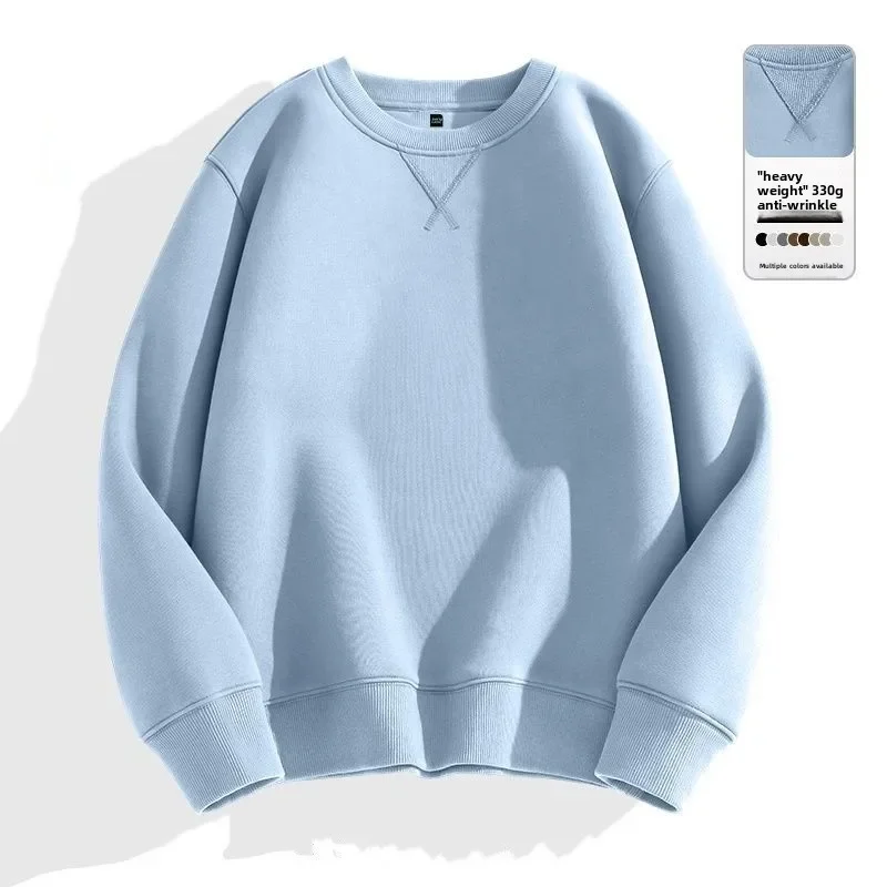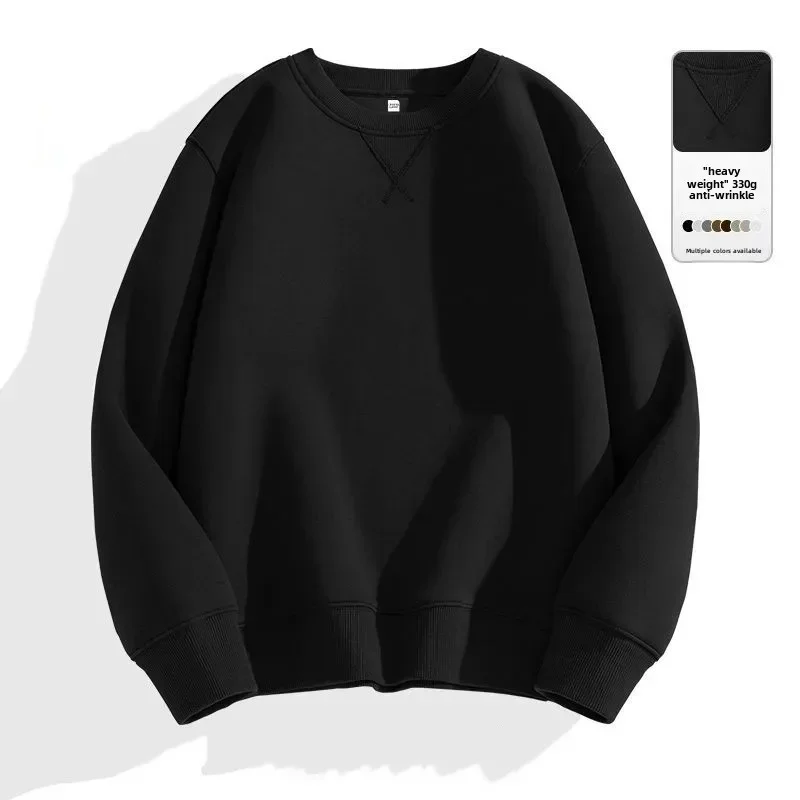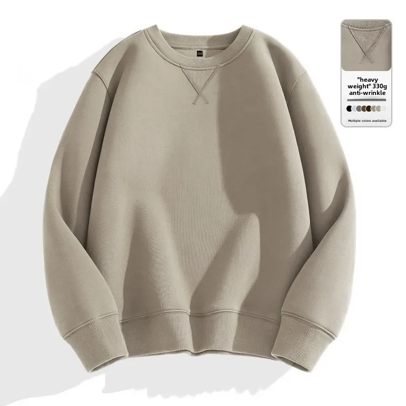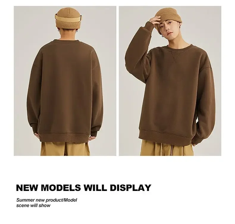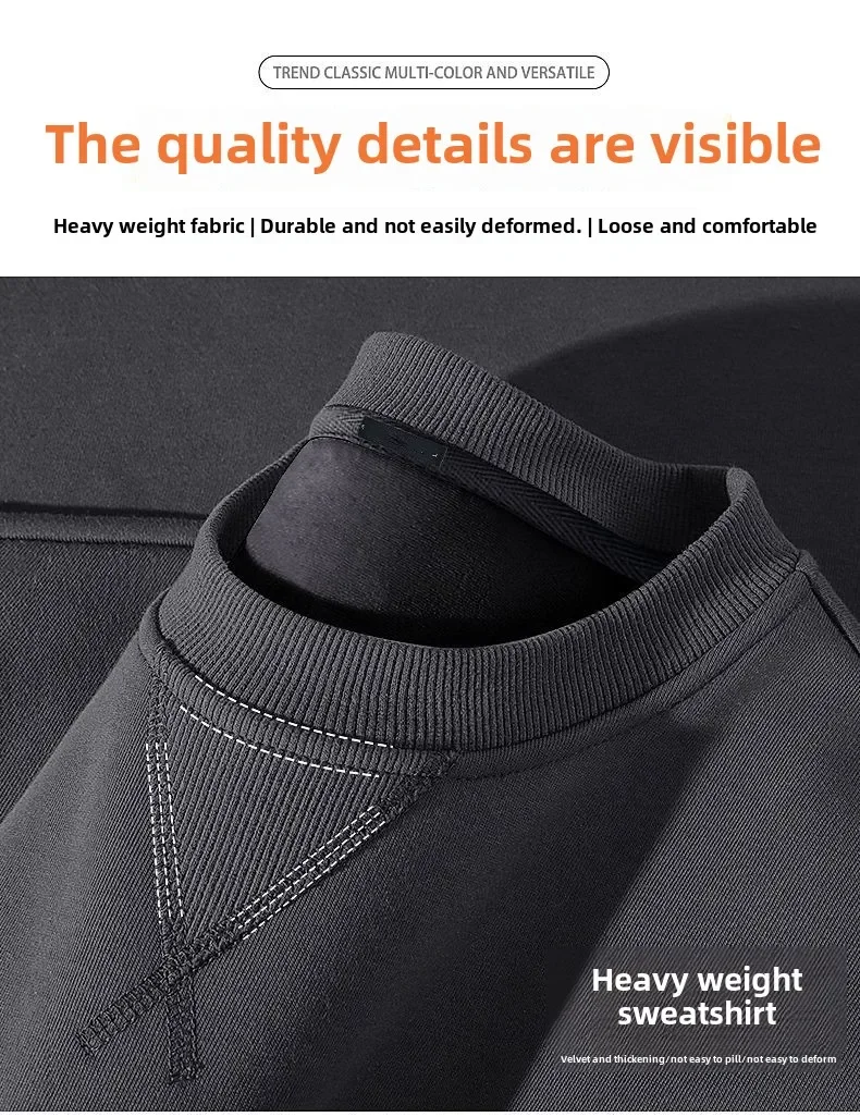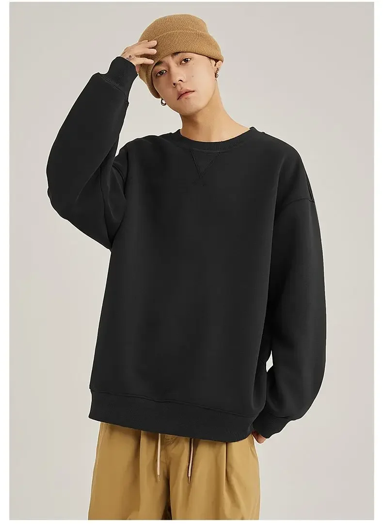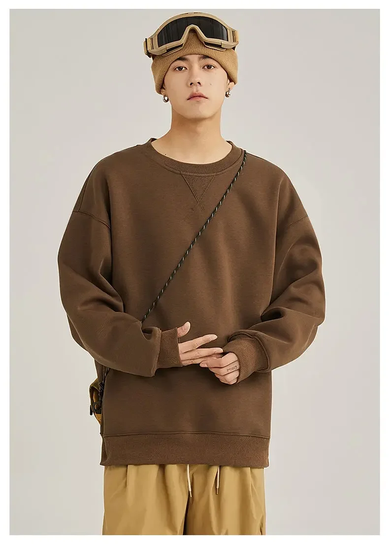 Thickened Fleece Hoodless Sweatshirt Men's Round Neck Winter Casual Loose Fit Cotton Polyester Long Sleeve Self Heating