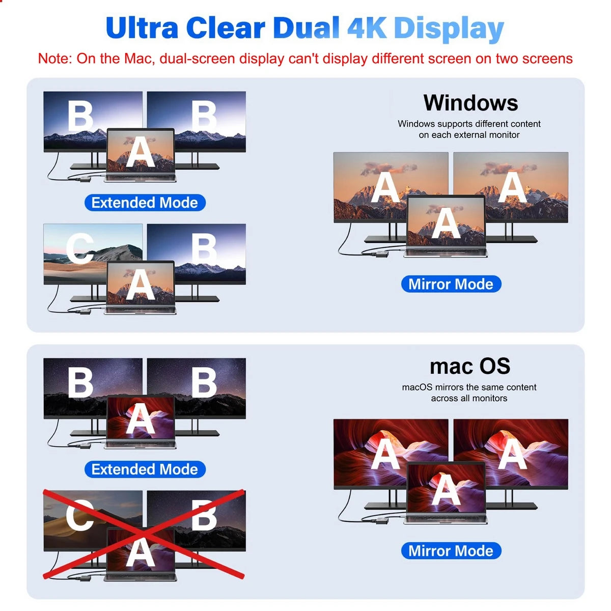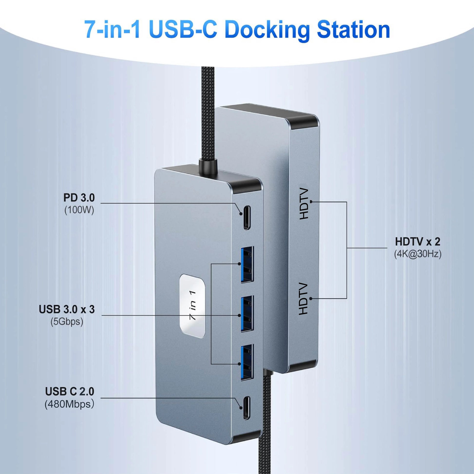 USB C Hub Dual Monitor, 7-in-1 Docking Station with 2 HDTV 4K60Hz, 3 USB3.0, 100W PD, for MacBook, Dell, HP, Surface