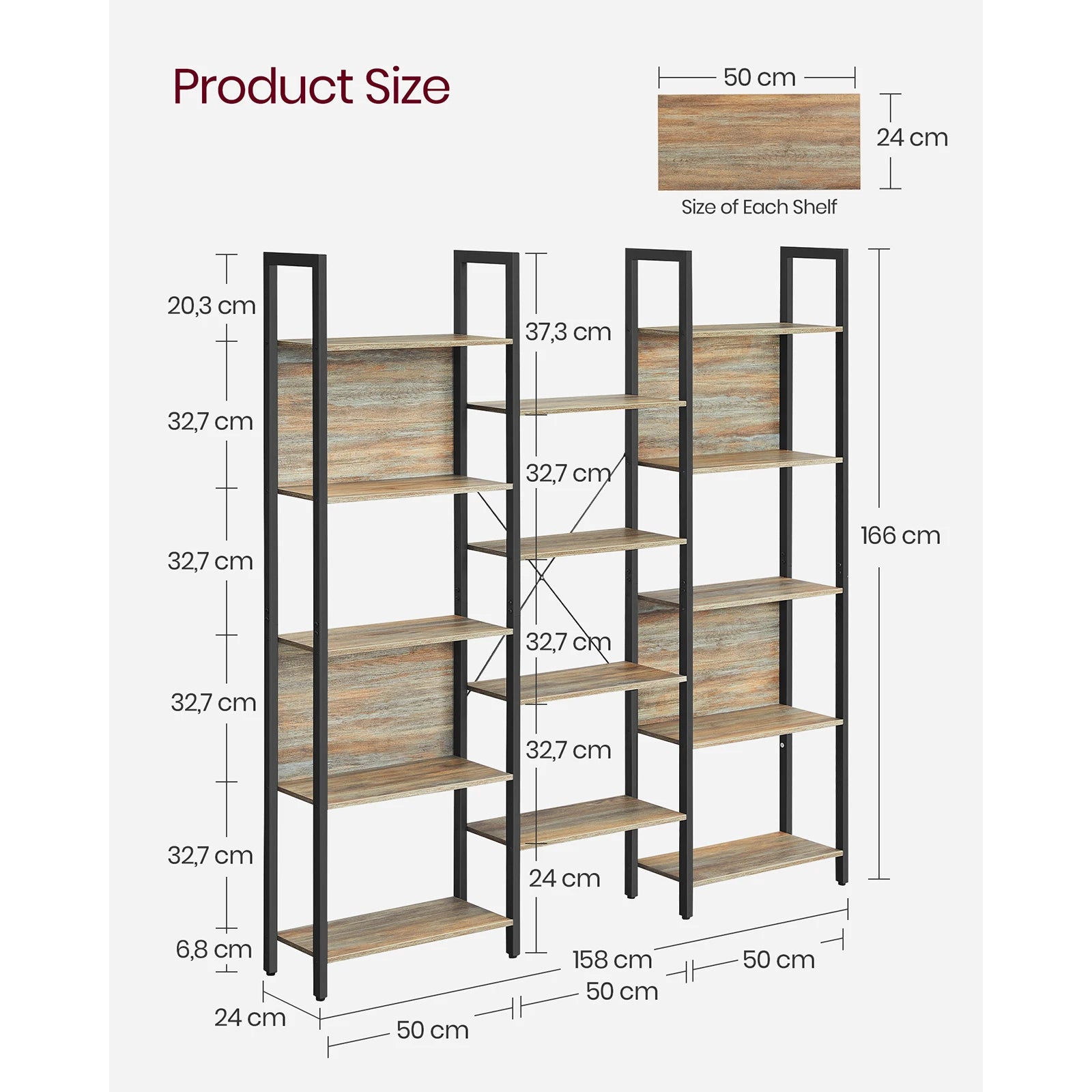 VASAGLE Bookcase, Bookshelf with 14 Shelves, Metal Frame, Shelf Unit for Living Room, Home Office, 24 x 158 x 166 cm
