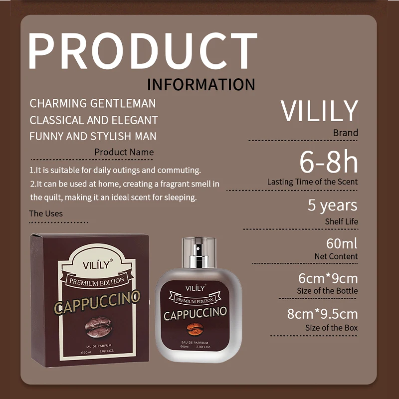Vilily Men's Gourmet Perfume 60ml Premium Mellow Chocolate Fragrance Charming Coconut Coffee Light Perfume Woody Natural Spray