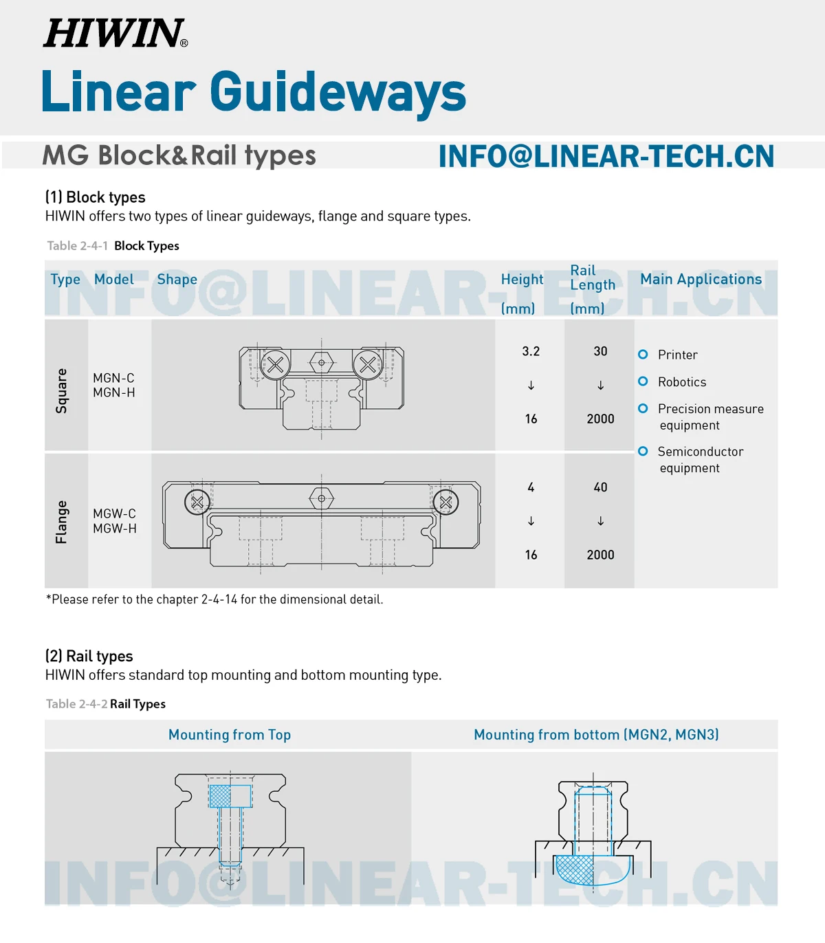 Features of HIWIN MG Series