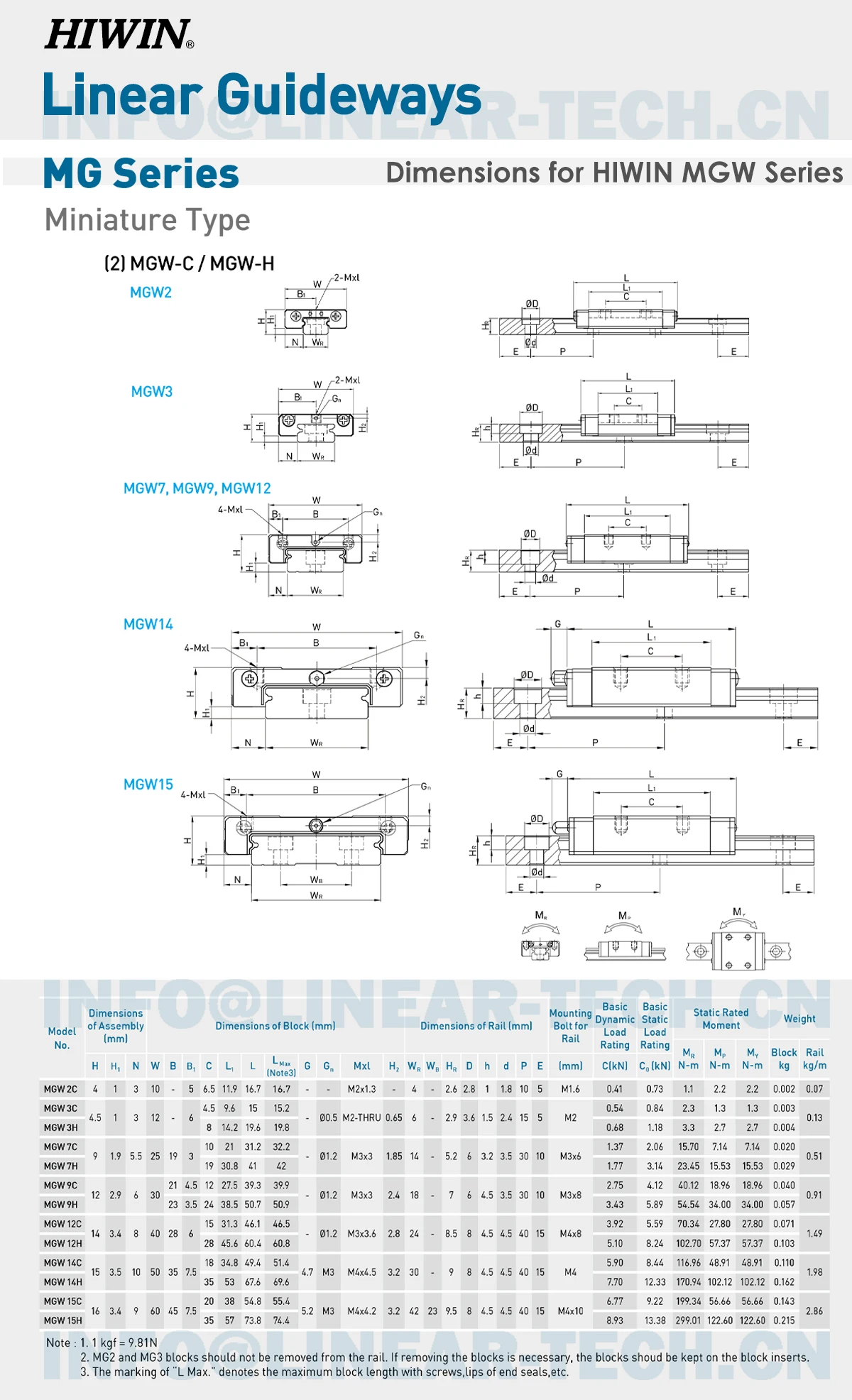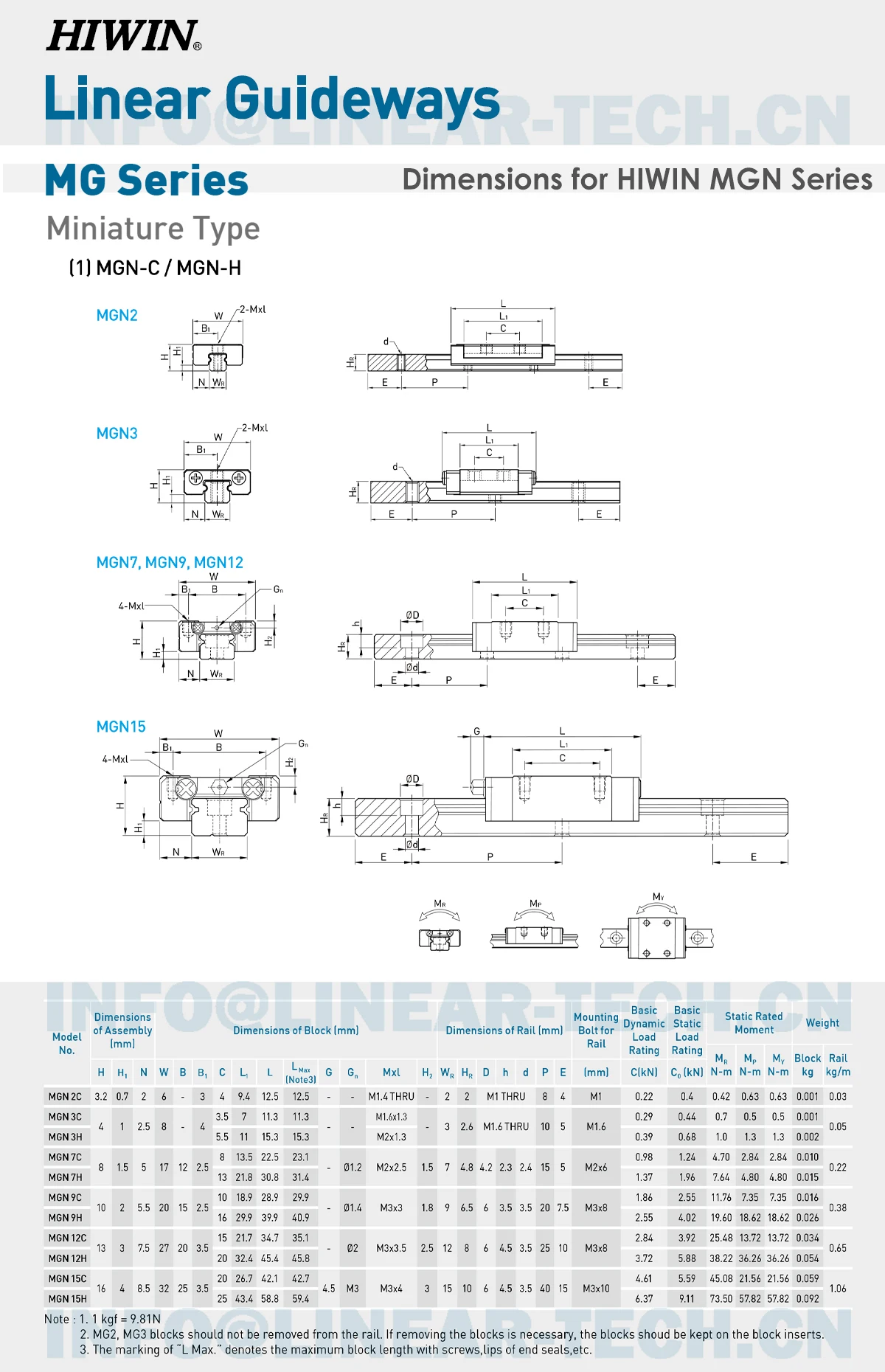 HIWIN MG Block Model: HIWIN MGN9H MGN12H