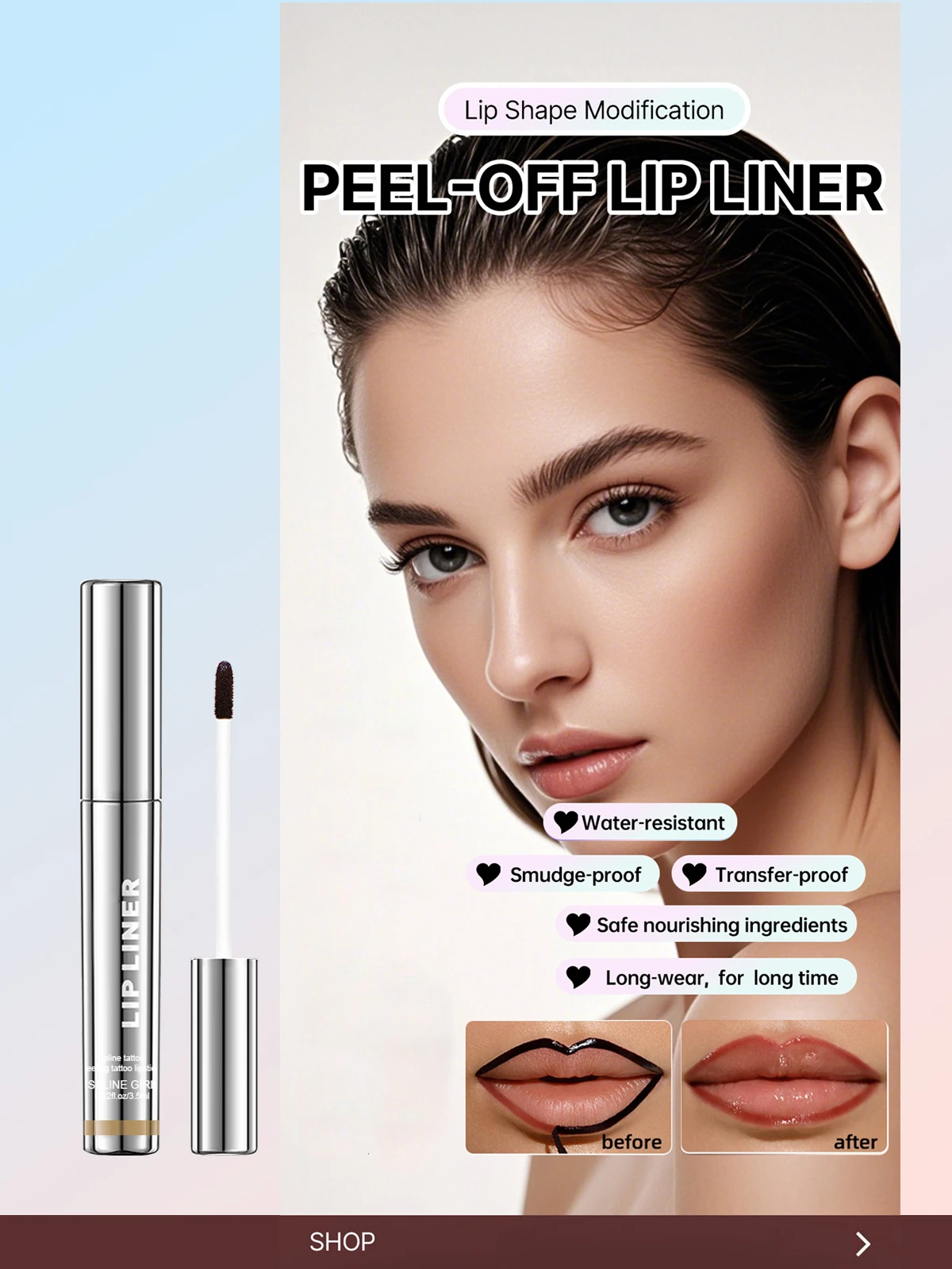Once the formula has set, carefully peel off the film to reveal a smudge-proof, semi-permanent lip color.